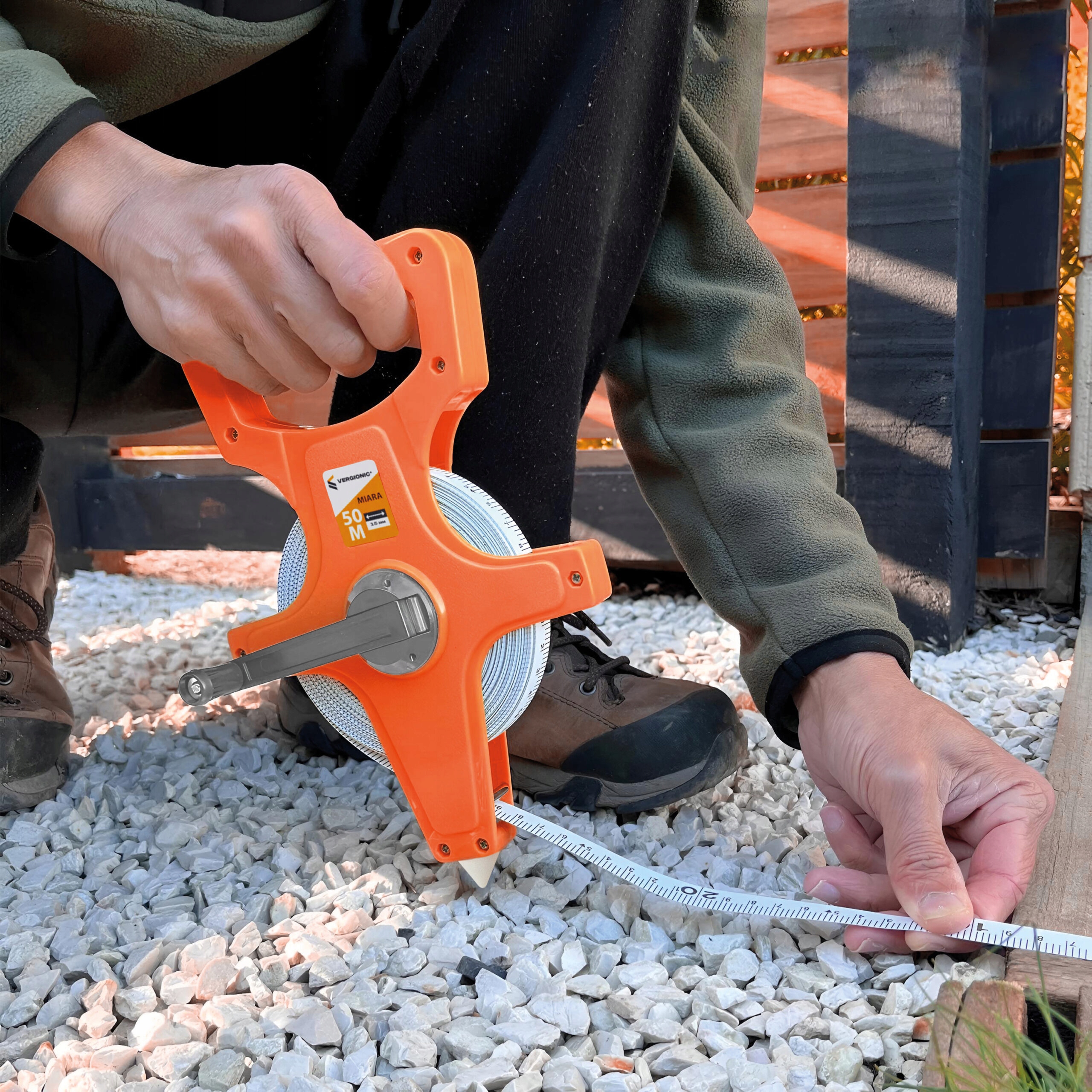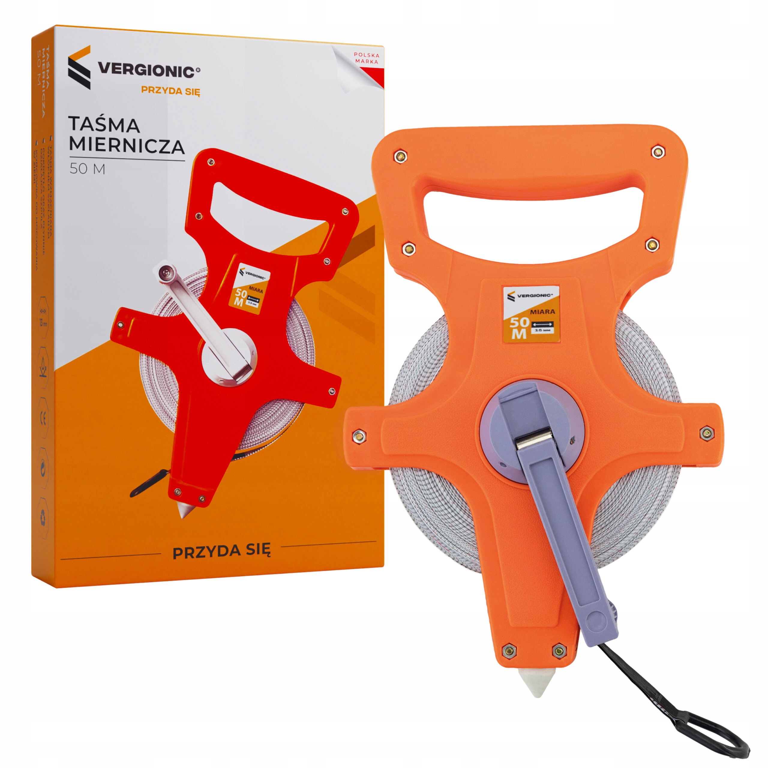 Завдяки своїй довжині 50 м, стрічка є дуже практичним інструментом для вимірювань у великих приміщеннях або на відкритому просторі. Це ідеальний інструмент для будівельників, які вимірюють довгі ділянки, наприклад, при закладанні фундаменту або монтажі конструкцій. Це також корисно в садівництві, наприклад, при вимірюванні довжини парканів або формуванні кущів і дерев. Згорнута міра Vergionic характеризується: