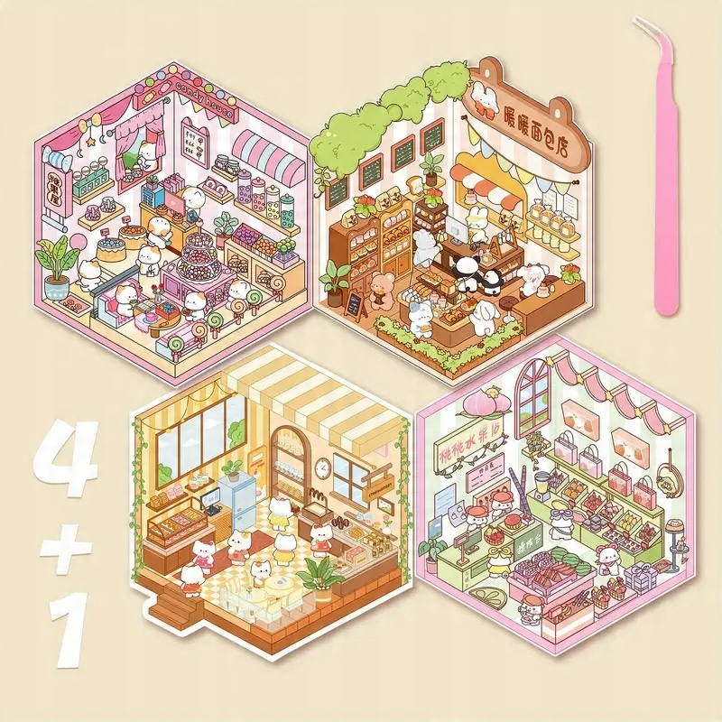 S3D82 3D Наклейки DIY з Tiktok Roombox Set 4 Shop Shop Shop