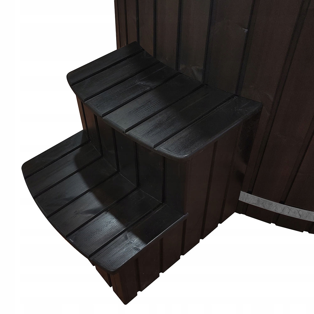 Усю гідромасажну ванну було розміщено в корпусі з темного дуба Thermowood. Термодеревина - це спеціально оброблена деревина, яка має високу стійкість до погодних умов, комах і грибків. Це надає гідромасажній ванні природний і приємний вигляд, який ідеально вписується в сад.