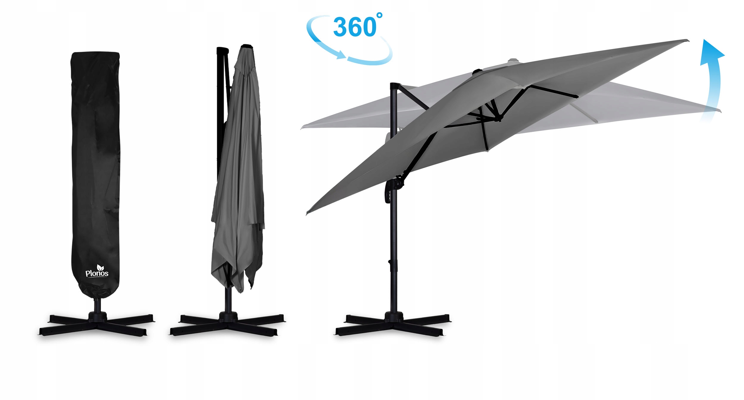 Large garden umbrella 360º Plonos 9 m² Shadow h1> - Plonos: 488300