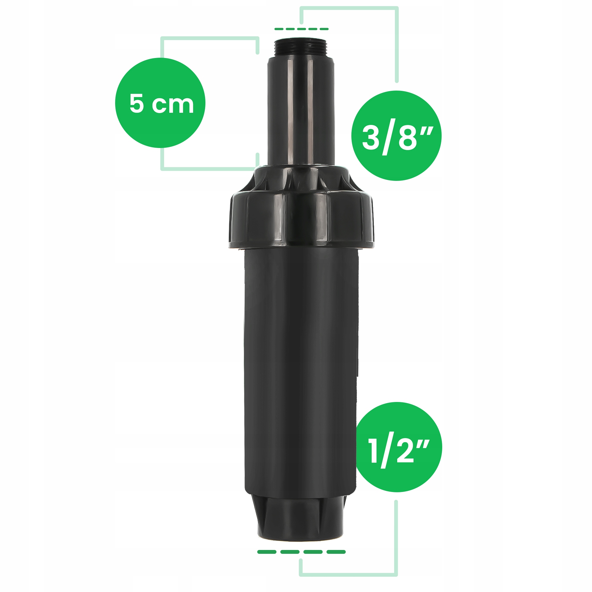 Спринклер сумісний з усіма видами форсунок для зрошення - ви можете легко адаптувати набір до власних вимог. Матеріал високої якості забезпечує стійкість до погоди, хімічні речовини та механічні пошкодження.