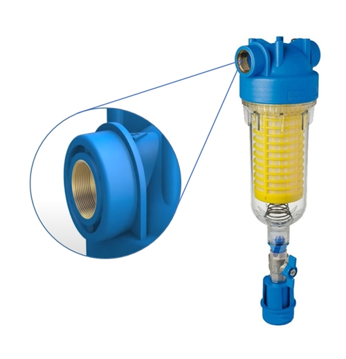 Латунні вхідний і вихідний отвір головки захищають від тріщин головки або скручування різьби під час встановлення фільтра, що неможливо з головками фільтра з вхідним і вихідним отворами, виготовленими з пластик.