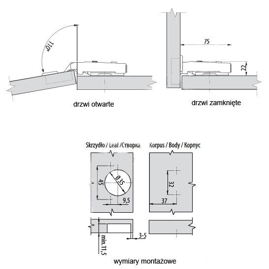 автор купівля 1 комплекту ви отримуєте 2 штуки чашкових петель fi 35 + 2 шт. направляючої + 8 кріпильних гвинтів 4x16 мм + 4 ковпачки, що покращують естетичність петлі;