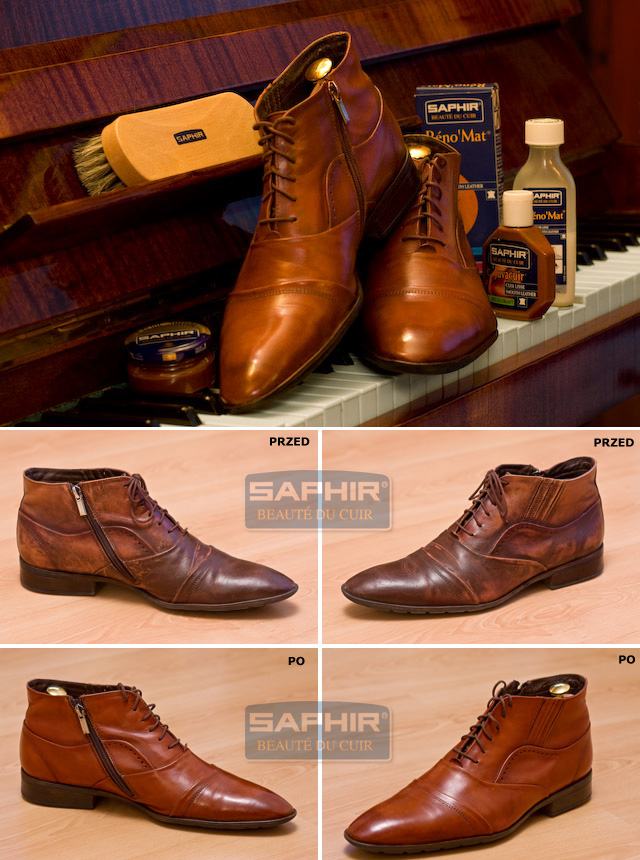 - Знежирте шкіру за допомогою SAPHIR – RENOMAT або іншого засобу для шкіри.