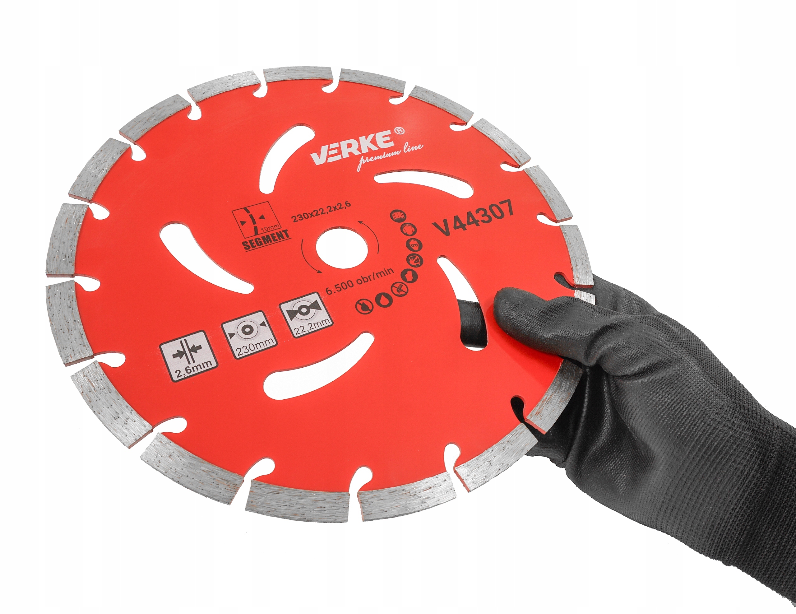 Професійний алмазний диск, сегментарна марка Verke Premium Line використовується для вирізання матеріалів жорстких будівель. Спеціальна форма обода діамантового щита гарантує більшу швидкість різання в найскладніших матеріалах, не втрачаючи якості обробки. У наборі ви отримаєте ущільнювальне кільце, щоб зменшити внутрішній діаметр. Розроблений для сухої роботи з кутовими шліфувальними верстатами. Ви можете використовувати його для вирізання бетону, цегли, клінкера, бруківки. Щит має леза сегмента, що полегшує видалення здобич і дозволяє легко працювати на твердих поверхнях. У наборі ви отримаєте ущільнювальне кільце, щоб зменшити внутрішній діаметр. Verke Premium Line - найкращий вибір під час найвибагливішої роботи. Сухий і мокрий ріжучий щит.
