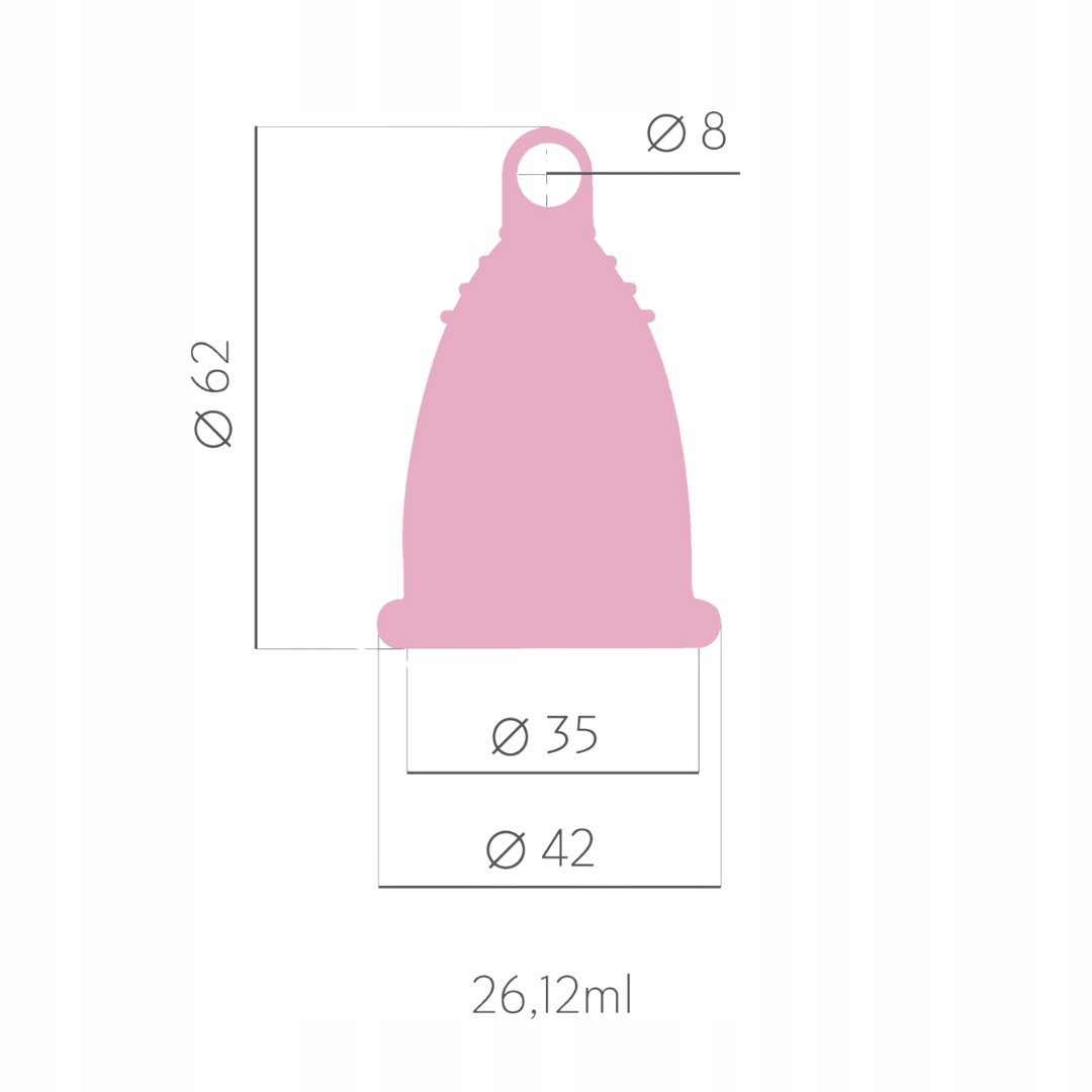 Здоров'я є найважливішим - також під час менструації. Чашку слід кип'ятити у воді до і після кожного циклу. Продукт виготовлений із 100% медичного силікону із середньою твердістю, що робить його легким для чищення та зручного для використання. Набір включає контейнер для стерилізації та бавовняний мішечок для зберігання. Ідеальне рішення для свідомого циклу.