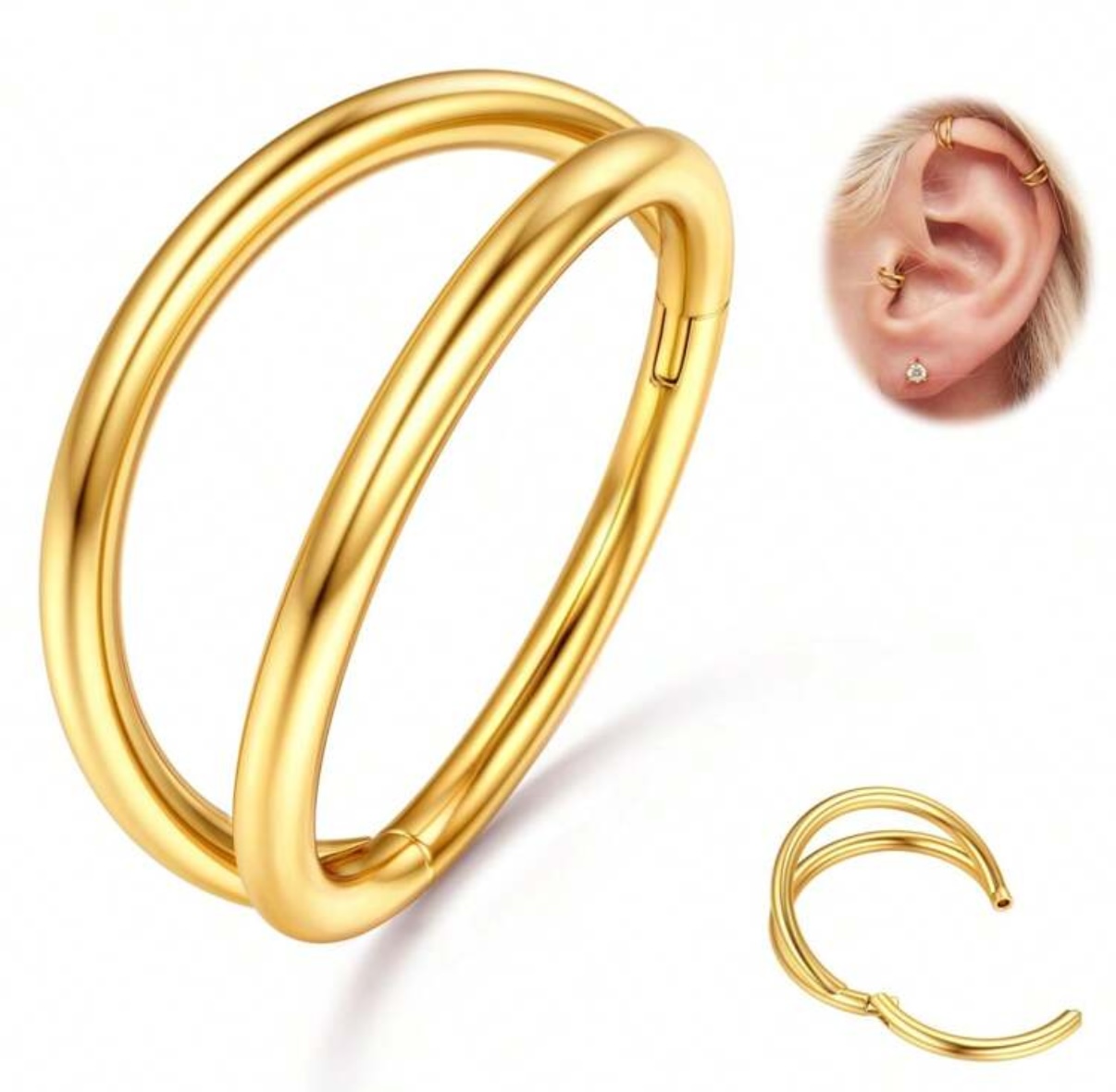 СЕРЕЖКА CLICKER КОЛІЩАТКА ПОДВІЙНА ЗОЛОТА ХІРУРГІЧНА СТАЛЬ CONCH HELIX 1,2/8ММ
