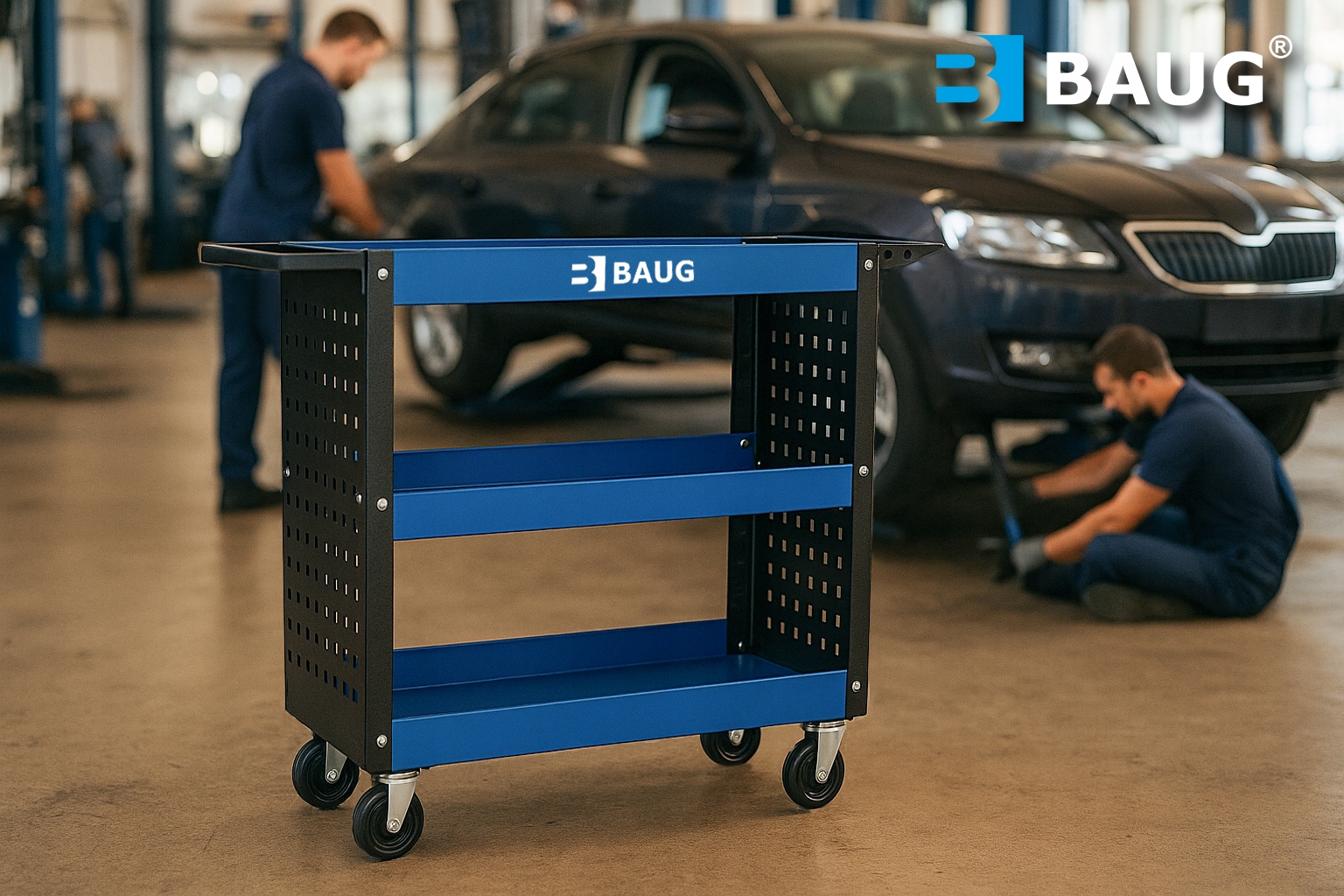 Трипільне обслуговування Baug Service -це незамінне обладнання для будь -якої майстерні, гаража або службового заводу. Завдяки суцільній конструкції та продуманій конструкції, це дозволяє зручне зберігання та транспортування інструментів та аксесуарів, необхідних для роботи. Навантажувальна здатність до 136 кг гарантує можливість використання навіть на великих навантаженнях, а компактні розміри роблять маневрування навіть у обмеженому просторі.