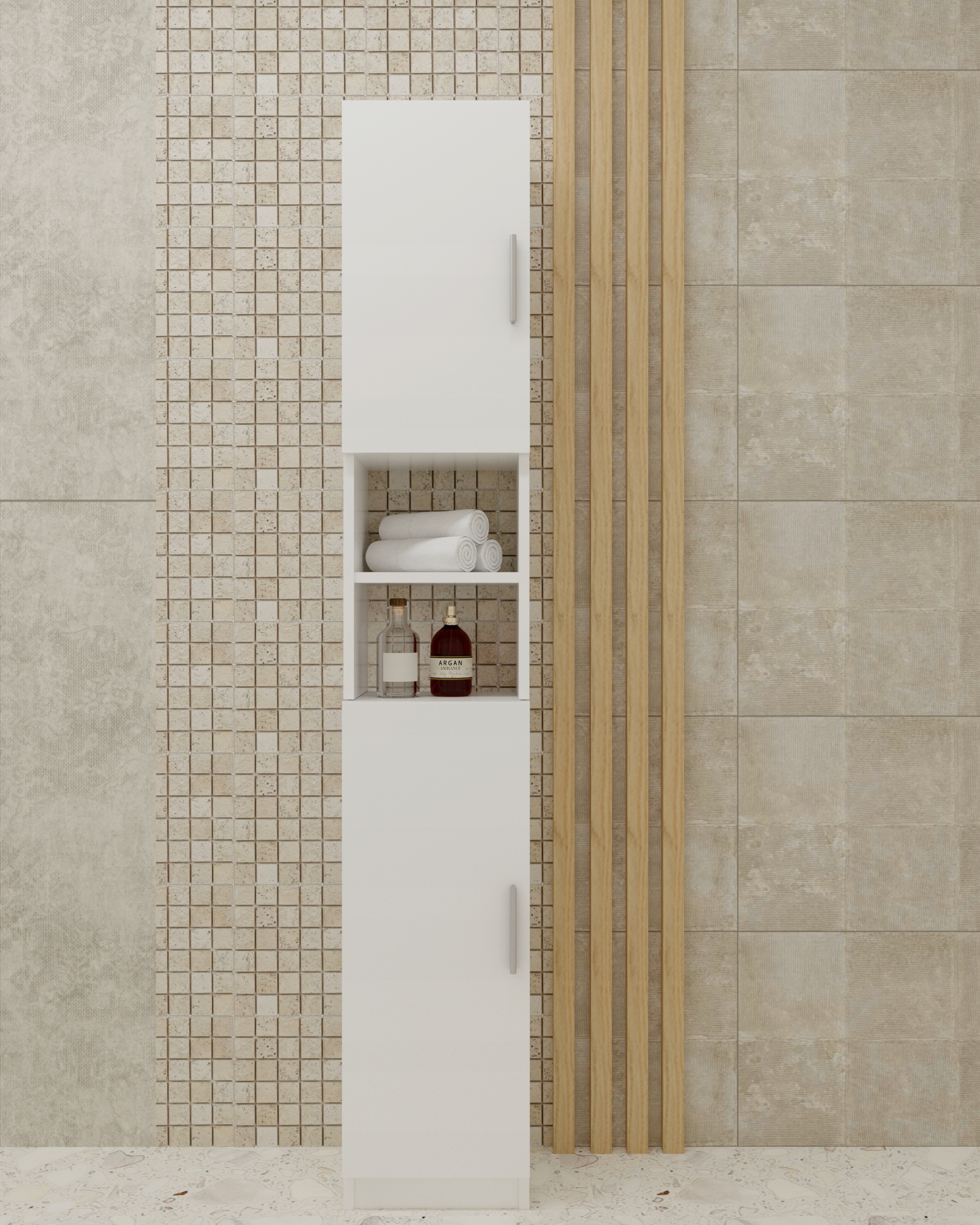Висока структура оснащений до 6 полиць, він може вмістити рушники, косметику та повсякденні аксесуари.