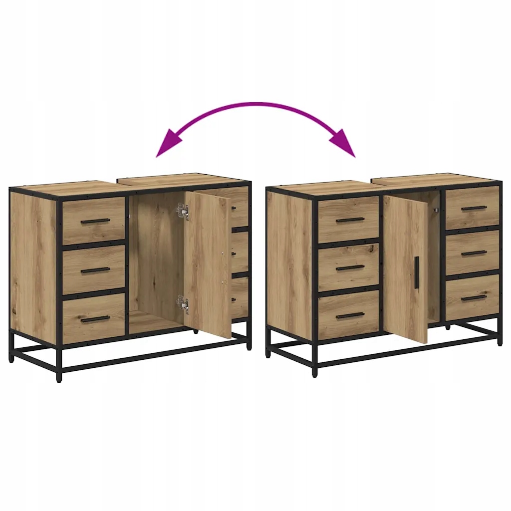 Цей набір шаф у ванній кімнаті в промисловому стилі виготовлений з приємного поєднання матеріалів та сталі на основі деревини, що підходить, що робить його твердим, і в той же час стильні меблі, що відображає сувору атмосферу горища та складів. З розмірами 80 х 33 х 60 см, він ідеально впишеться у вашу ванну кімнату, пропонуючи багато місця для зберігання, не засмічуючи інтер’єр. Елегантний дизайн з чорними акцентами робить його чудовим вибором для сучасних інтер'єрів. 4 Чудове поєднання з Stal додає сили і ідеально підходить для промислового вигляду, і в той же час дуже довговічний.