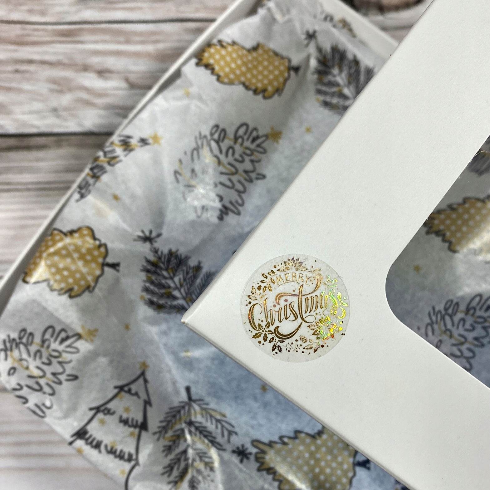 Різдвяні коробки, пакети та цигарковий папір просто вимагають цих милих маленьких наклейок! В упаковці 15 штук білих круглих наклейок із золотим різдвяним мотивом і написом "З Різдвом!"
