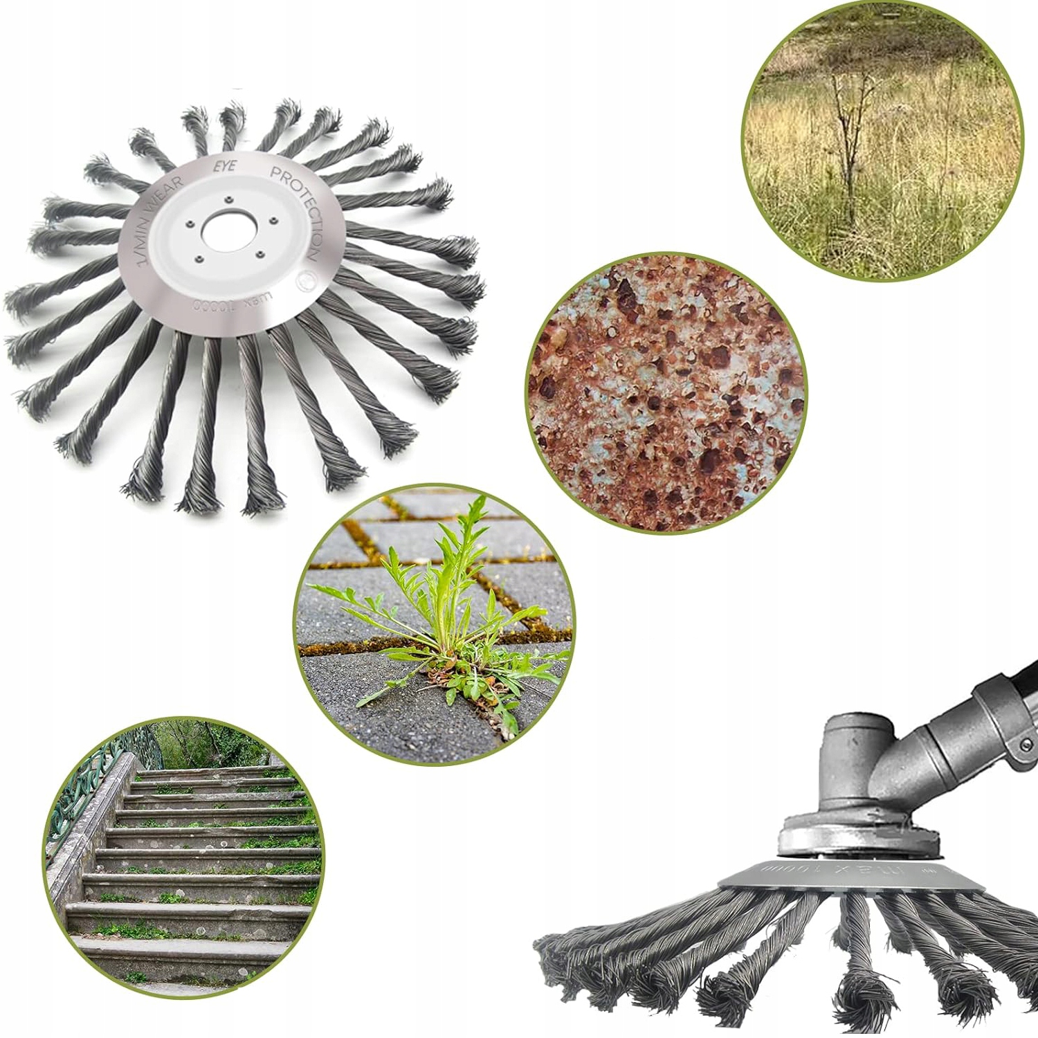 - ☘️ 【Широкий діапазон】 Сталева тримерна головка є підходить для різноманітних застосувань, таких як сади,газони, стоянки, ферми, тротуари тощо. Незалежно від того, видаляєте ви бур’яни, мох чи навіть іржу, це необхідний інструмент