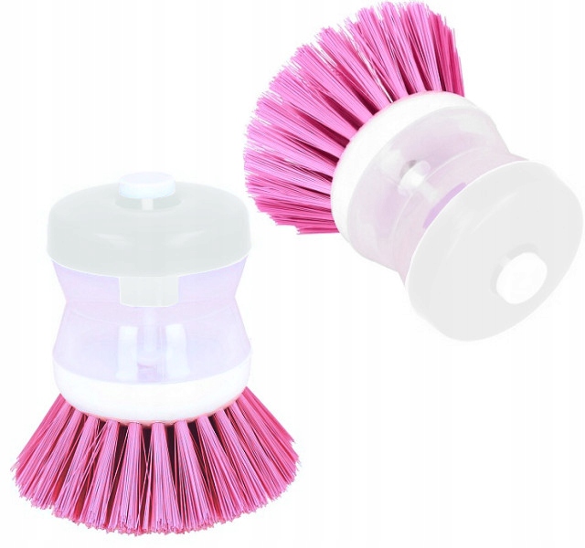 Універсальна практична щітка для домашнього використання з дозатором миючих засобів, наприклад рідини для миття посуду. Рідина виділяється, коли ви натискаєте кнопку у верхній частині щітки.