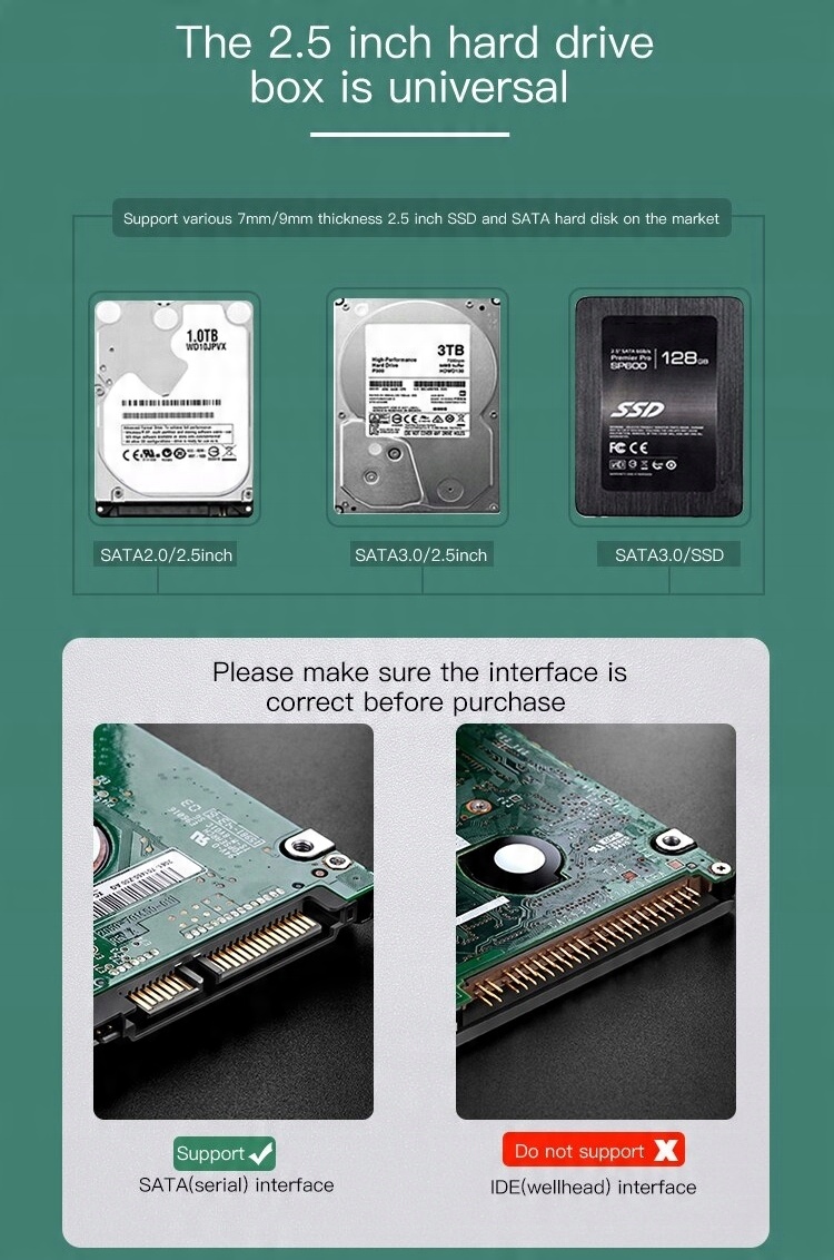 Новий міцний корпус, який дозволяє підключати 2,5-дюймовий зовнішній накопичувач SATA з максимальною ємністю 2 ТБ до комп’ютера через порт USB.