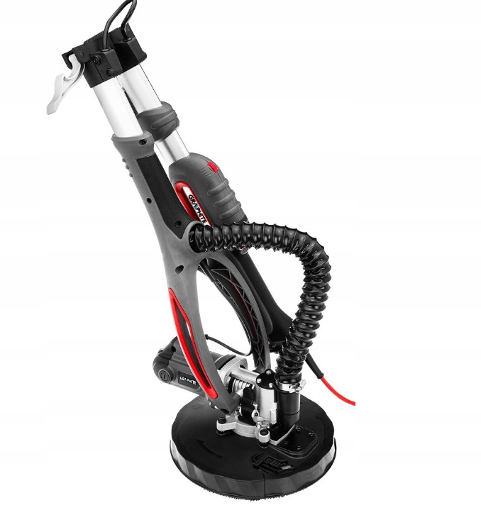 штукатурна шліфувальна машина 710 Вт, 215 мм, кругла і трикутна стопа, графіт ліхтарика 59G264 - це пристрій високого класу для обробки гіпсової поверхні, оснащений телескопічною ручкою зі замінними ногами - круглими та трикутними. Шліфувальна машина має потужність 710 Вт і можливість гладкого регулювання повороту головки, в діапазоні від 800 до 1700 обертів на хвилину. Диск з шліфувальником має діаметр 215 мм.