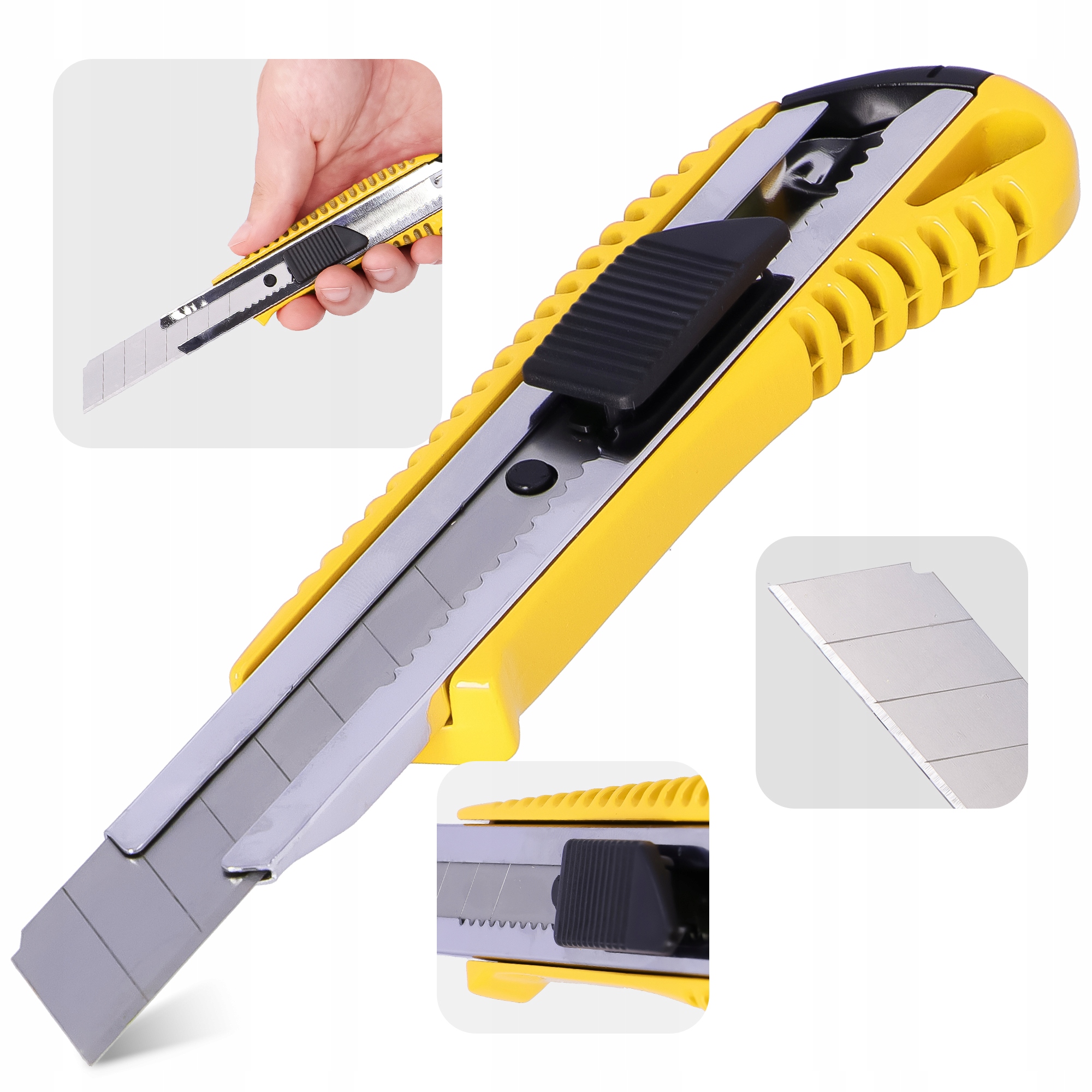 зручна ручка забезпечує комфорт використання та точність роботи, а зубчасті краї тіла запобігають ковзанню з руки. Спеціальний замок дозволяє регулювати довжину леза, яке можна легко замінити, якщо це необхідно. Це економічне рішення змусить вас не купувати новий інструмент кожного разу, коли лезо використовує.