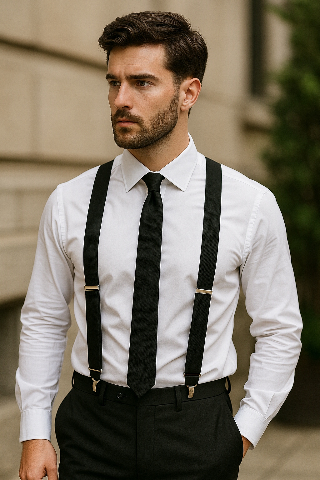чорнийСтильні чорні брекети Додайте елегантність до будь -якої стилізації та забезпечують комфортну, певну підтримку штанів протягом дня.