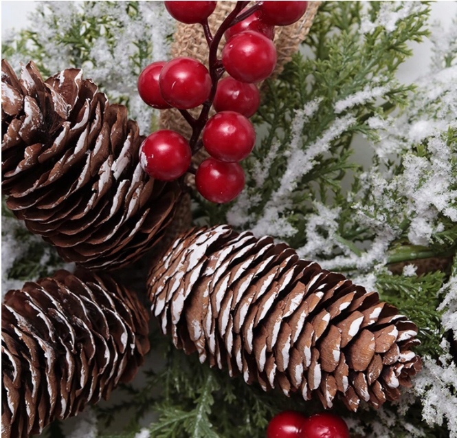 Прикрашений хвоєю, сосновими шишками, червоними ягодами тощо, цей святковий червоно-зелений дизайн із насиченим святковим елементом стане ідеальним доповненням до декору вашого святкового будинку.