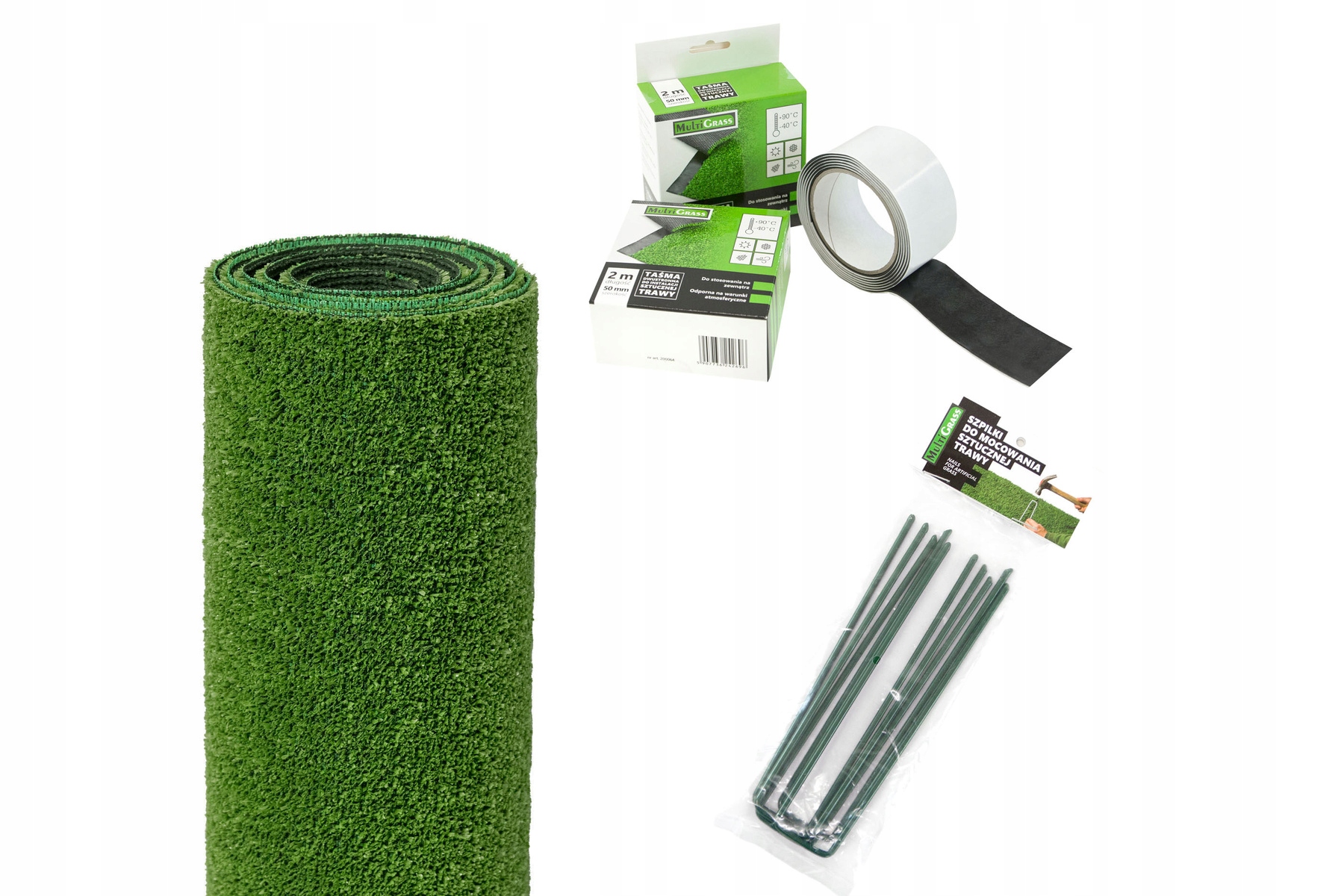 У випадку менших поверхонь можна використовувати подвійну стрічку для зовнішніх субстратів. Нанесіть пляму клею або в смуги на землю і міцно натисніть на траву.