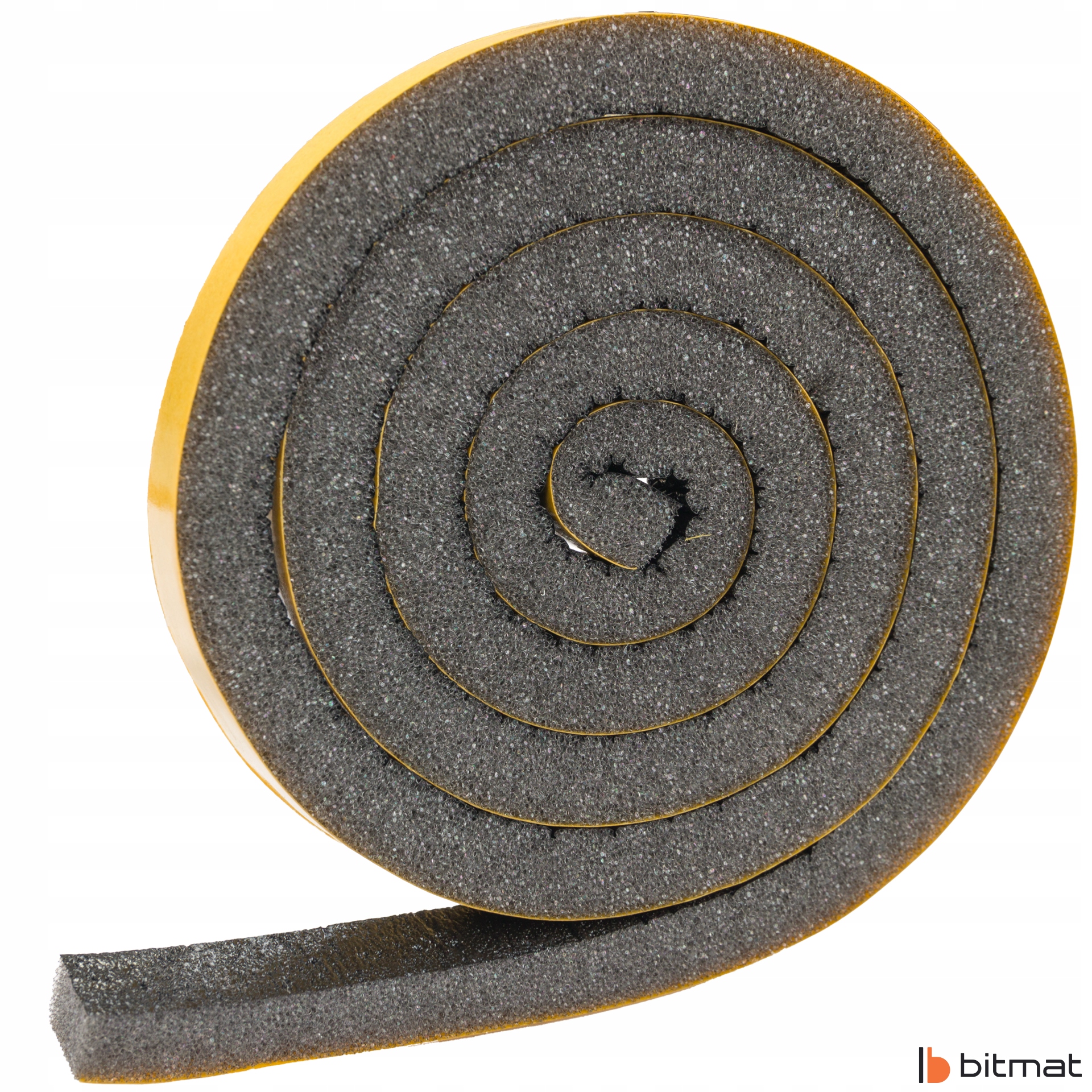 Ми пропонуємо інноваційний ущільнювач з пінополіуретану з відкритими порами розміром 10 мм х 10 мм х 100 см, покритий чорним фільтром. Цей додатковий елемент захищає ущільнювач від поглинання води та вологи, забезпечуючи його тривалий термін служби та ефективність у різних умовах