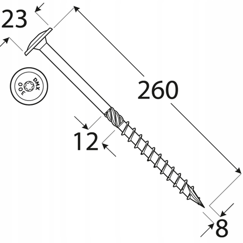 Столярні шурупи з пластинчастою головкою одного з менших діаметрів на ринку призначені для з’єднання дерев’яних конструкційних елементів. Вони не вимагають свердління і повноцінно замінюють будівельні цвяхи. Вони доступні довжиною до 400 мм