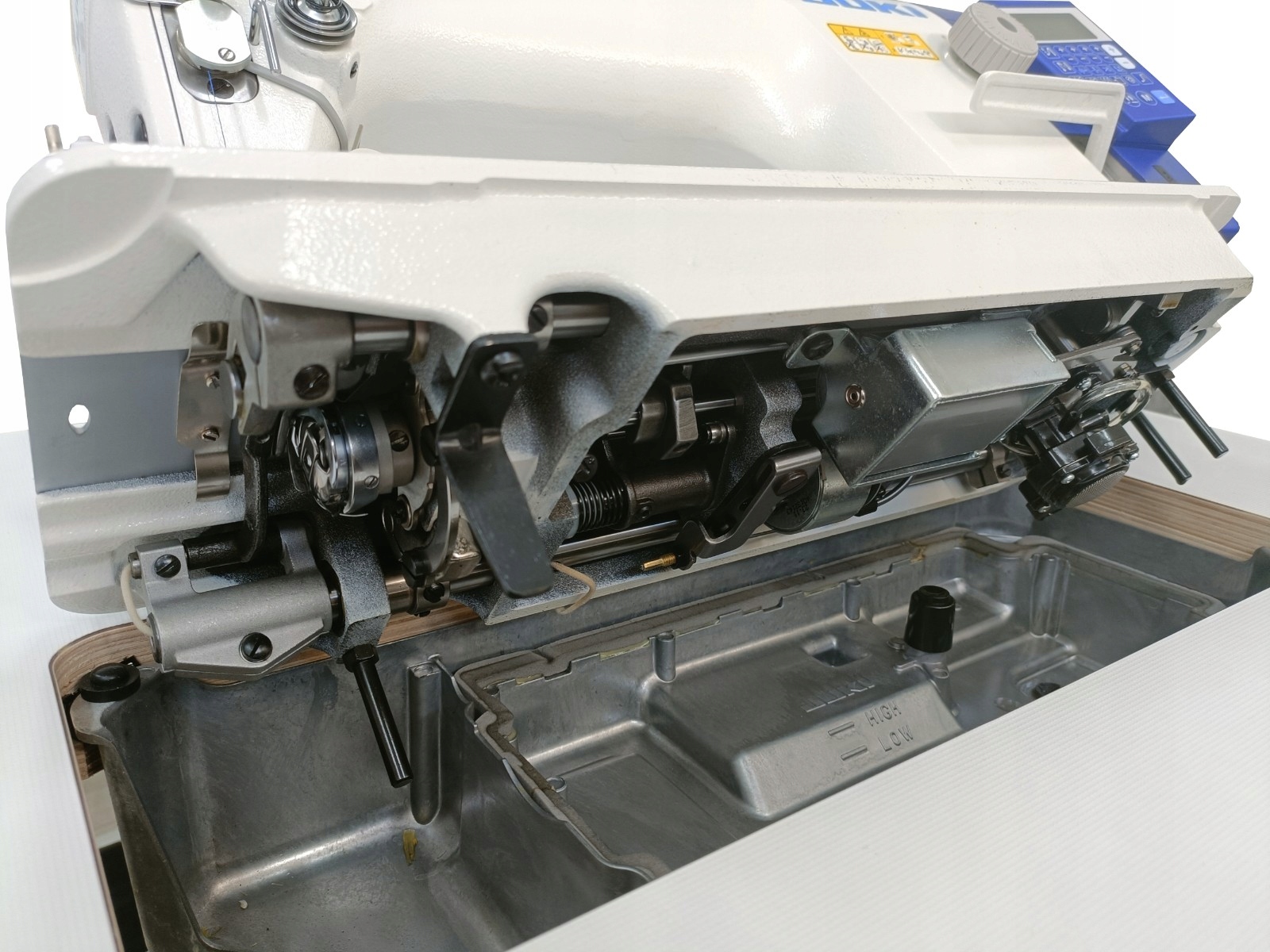 Швейна машина має вбудовану в голову енергію сервоприводу змінного струму, що забезпечує тиху і надійну роботу без зайвих вібрацій, а його сучасна конструкція дозволяє краще вентилювати двигун, що перекладається на більш тривалий термін експлуатації машини. Транспорт та матеріальний тиск , що забезпечує більший діапазон товщини пришиті матеріалу.