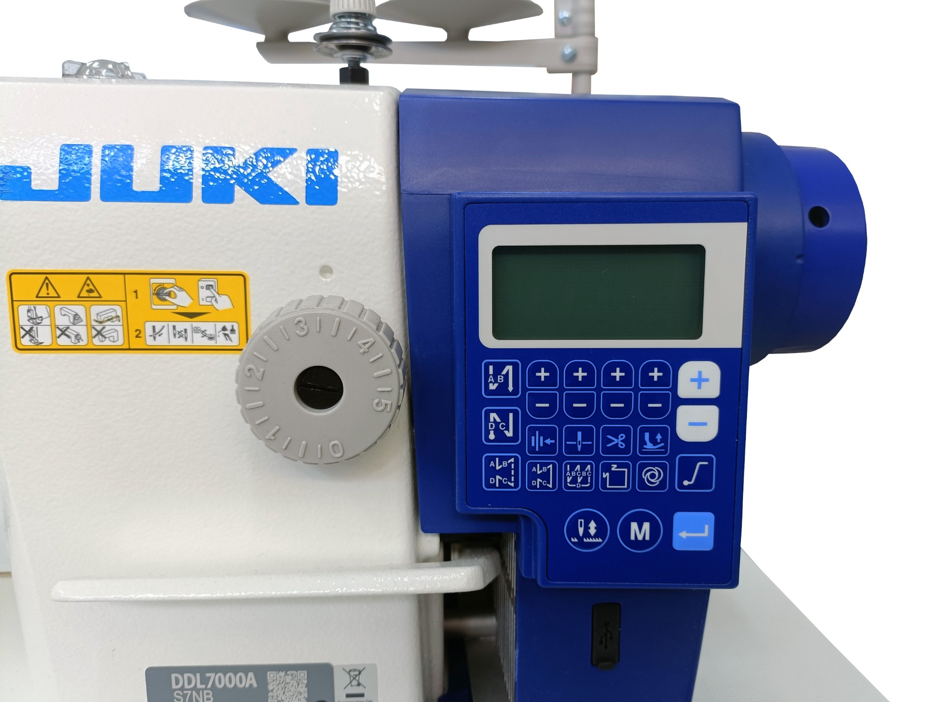 Stebnówka Juki DDL-7000AH-7 оснащений низкою автоматичних функцій, які значно покращують комфорт роботи. Серед них ви можете знайти автоматичне розрізання нитки, позиціонування голки, початкове та кінцеве програмування, шиття параметрів.