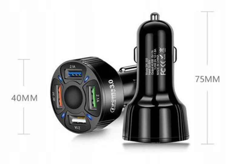 Сучасний автомобільний зарядний пристрій із чотирма USB-портами дозволяє швидко заряджати навіть кілька пристроїв одночасно.