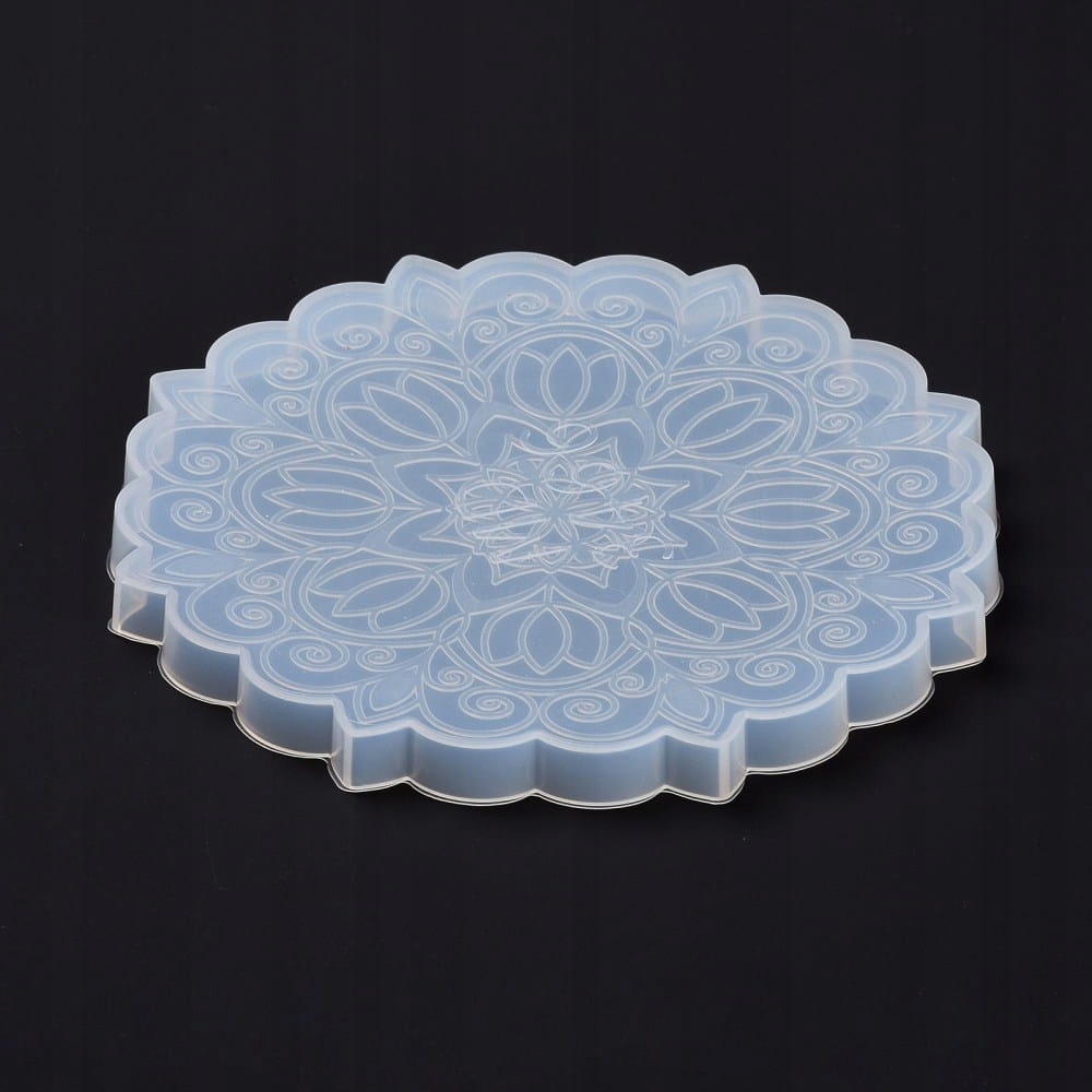 силіконова форма для виготовлення декоративних елементів, виготовлених з УФ -смол та двох -компонентних смол. Виготовлений з безбарвного силікону з високою міцністю. Ви можете кинути лотки, колодки.