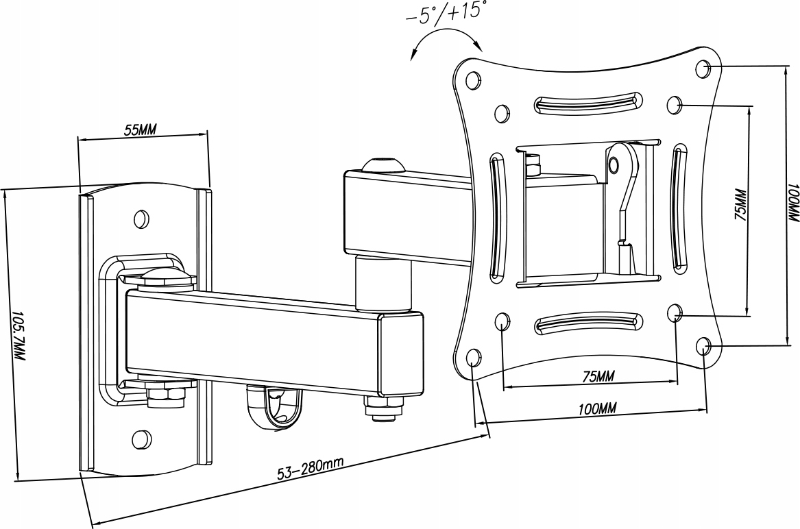 , що використовується найпопулярніший стандарт VESA означає, що ми можемо встановити практично кожен телевізор , оснащений отворами з інтервалом 75x75 та 100x100, а вага не перевищує 15 кг. Рівень
