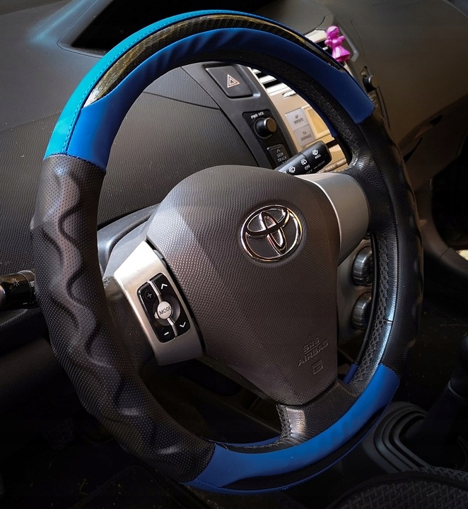 Класична і обидва спортивна кришка для керма в кольорі синій , містить елементи з мотивом вуглецю, розміщеним у верхній частині та дно. місце в руці, виготовлене з чорного перфорованого еко-шкірки, спеціально профілювані.