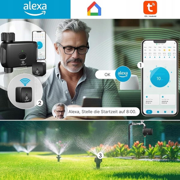 Завдяки інтегрованому датчику дощу, контролер зрошення автоматично адаптується до поточних погодних умов. Якщо дощ виявлений, контролер автоматично припиняє зрошення, щоб запобігти заливці та заощадженню води. Ця інтелектуальна функція забезпечує ефективне та стійке зрошення рослин.
