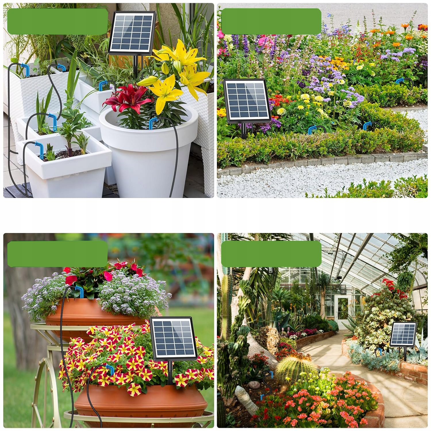 Сонячна панель та програміст із зрошення мають розділену структуру, завдяки якому полив зручніший і пропонує більш широкий спектр застосувань. Вони підходять для автоматичного поливу рослин на газонах, терасах, у садах, зрошеннях овочів, підвісних кошиків, горщиків, квіткових грядців, оранжерних та інших місць.
