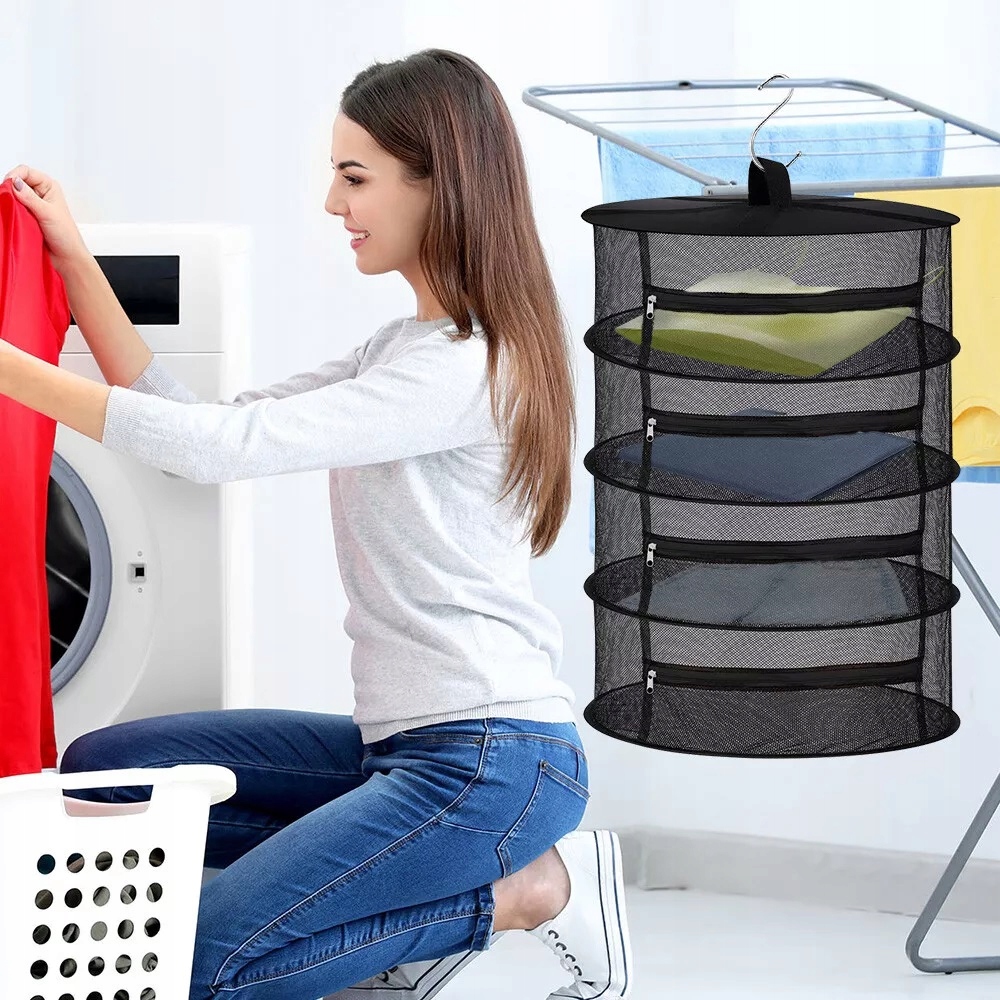 -Складений злив дозволяє швидко та ефективно зберігання, а вертикальна структура забезпечує дуже ефективне використання простору. Це чудове рішення проблеми швидкого висихання великої кількості трав, квітів та інших рослин у невеликому просторі. Після використання трав'яна сушарка складається плоскою, що полегшує зберігання до необхідності.