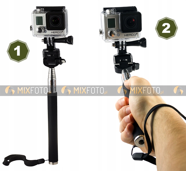 Монопод був створений з найвищої якості матеріалів для підтримки повної безпеки обладнання. Він створений спеціально для спортивних камер, таких як GoPro або SJCAM. Для прикріплення камери GoPro або SJCAM в наборі включено адаптер.