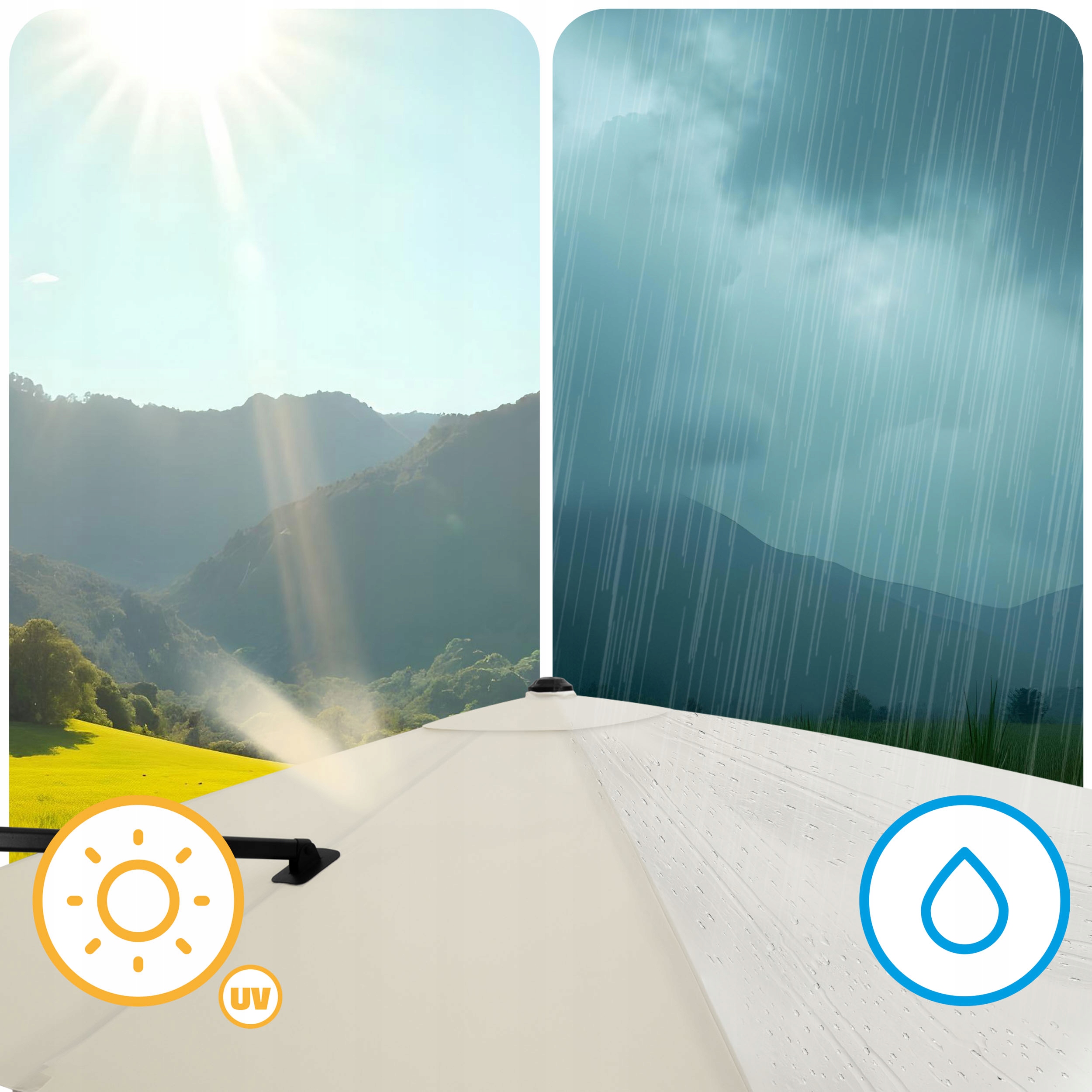 - Велика тінь - до 4,2 м після матеріалу, отвір вентиляції для циркуляції повітря. 8-сегментний навіс, сталевий каркас та ребро для максимальної міцності.