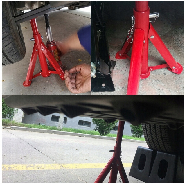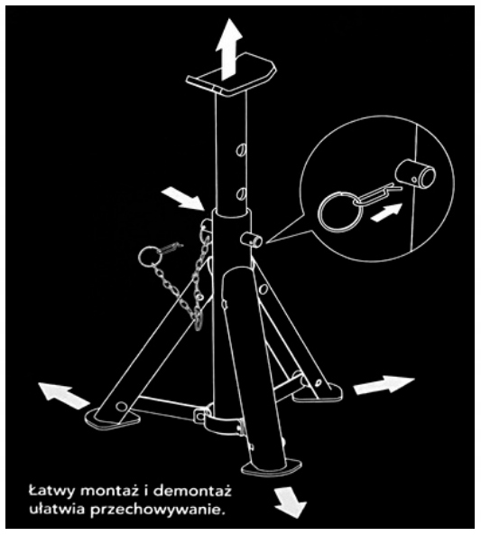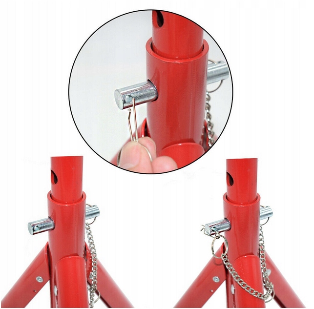 Стійки для автомобіля мають три складні ніжки та триступеневе регулювання висоти. Запобіжна шпилька постійно з’єднана з основою. Ідеально підходить для розвантаження домкрата. Вони є частиною основного обладнання кожної майстерні.
