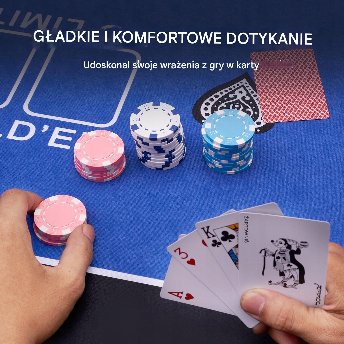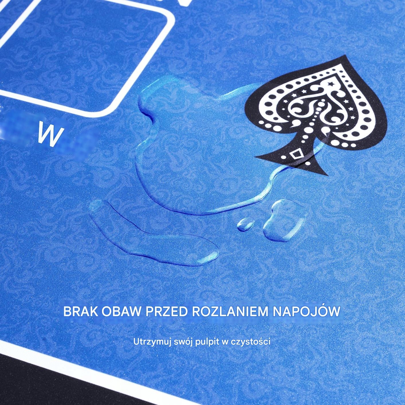 Складний покер-килимок з розмірами 180 × 90 см , призначених для 6-8 гравців , ідеально підходить для домашніх турнірів та вечорів з друзями. Синя поверхня з оксамитовою текстурою гарантує плавний рух карт.
