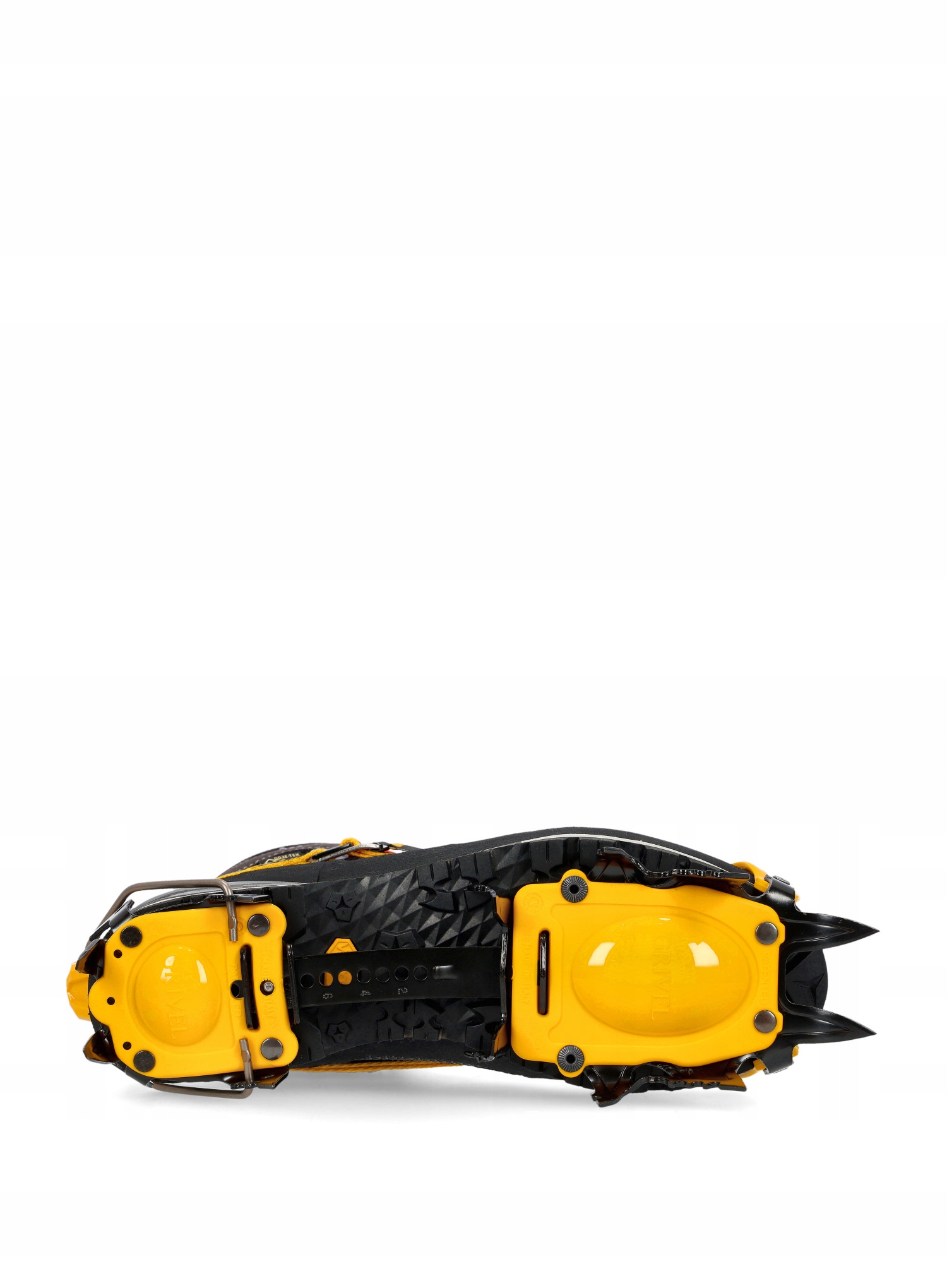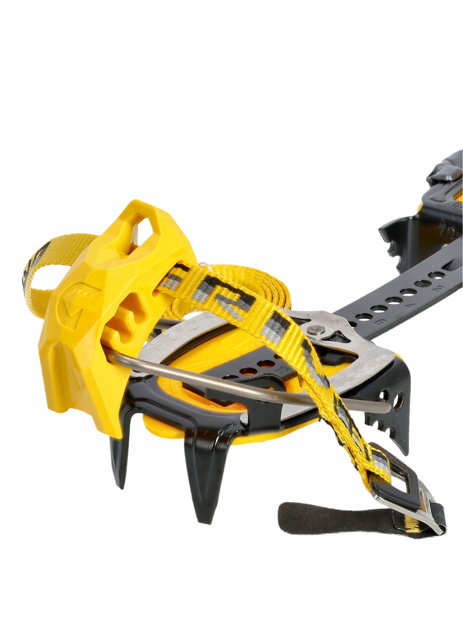 Напівавтоматичні кошики Grivel Air Tech New-Matic EVO також характеризуються чудовим зчепленням завдяки конструкції з дванадцяти зубцями, яка добре врізається в сніг або лід. Два передніх зуба розташовані горизонтально, що робить їх хорошою опорою під час крутого підйому або на стежці з елементами лазіння. Так звані антиснігові подушечки, що використовуються в антинизі, запобігають прилипанню снігу до підошви та накопиченню під нею.
