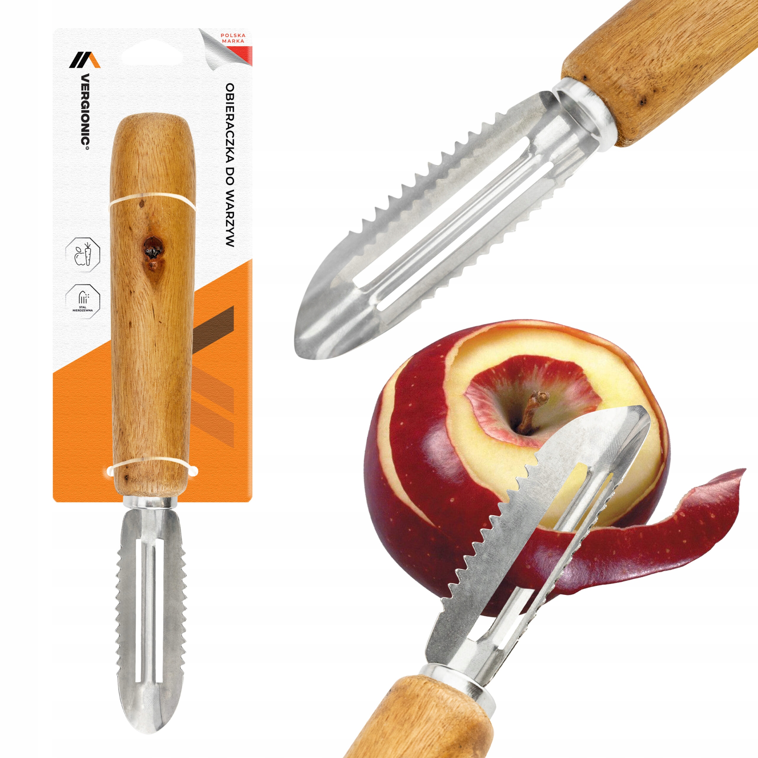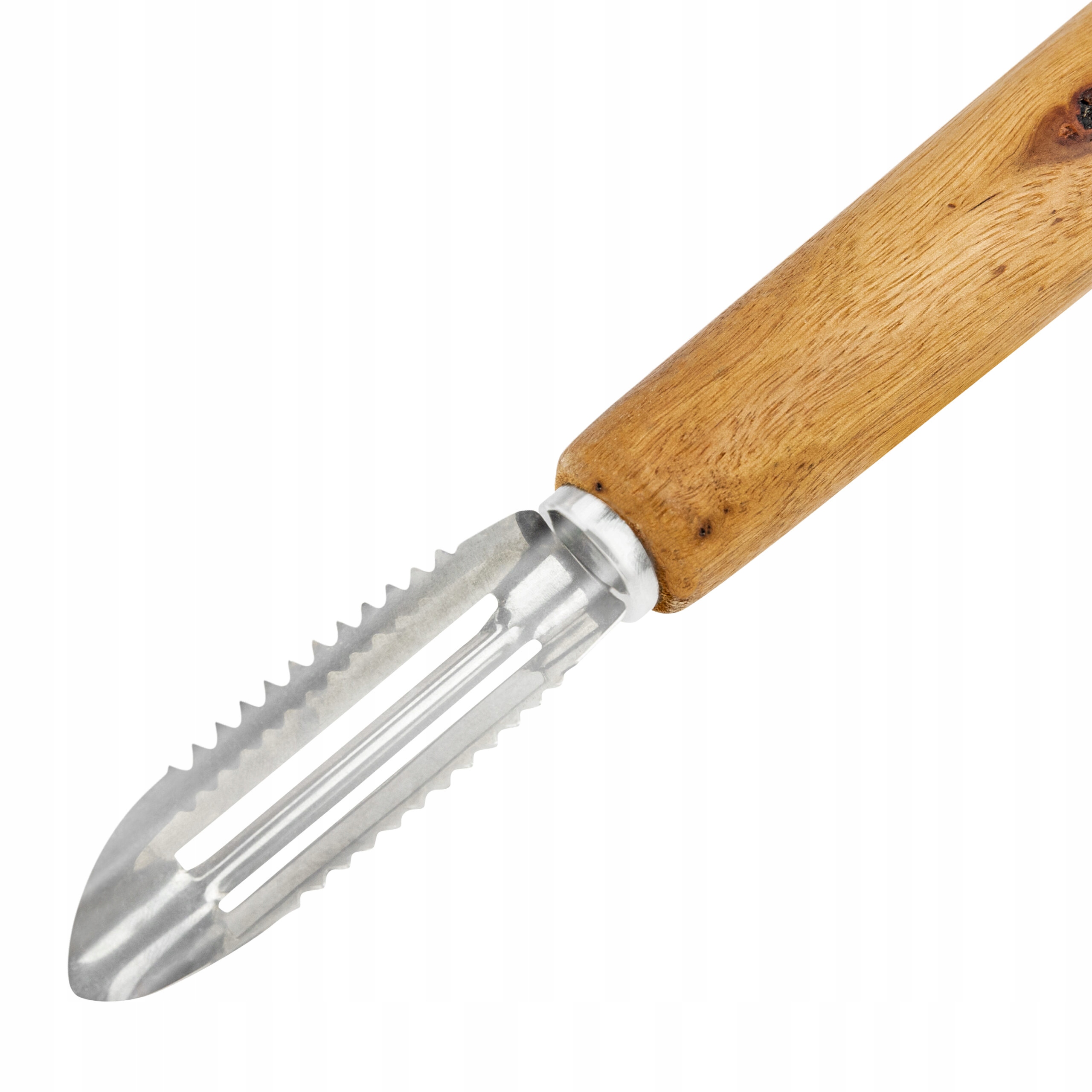 ✅ Овочечистка має дерев’яні ручки, тож ви можете зручно та надійно тримати її під час роботи.