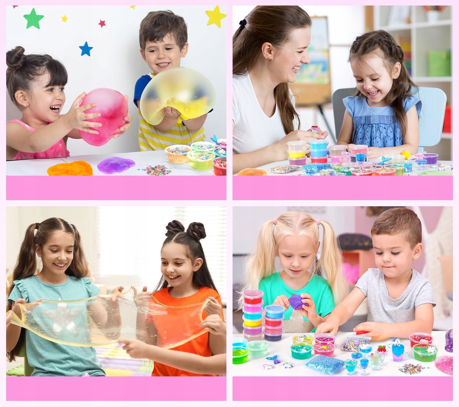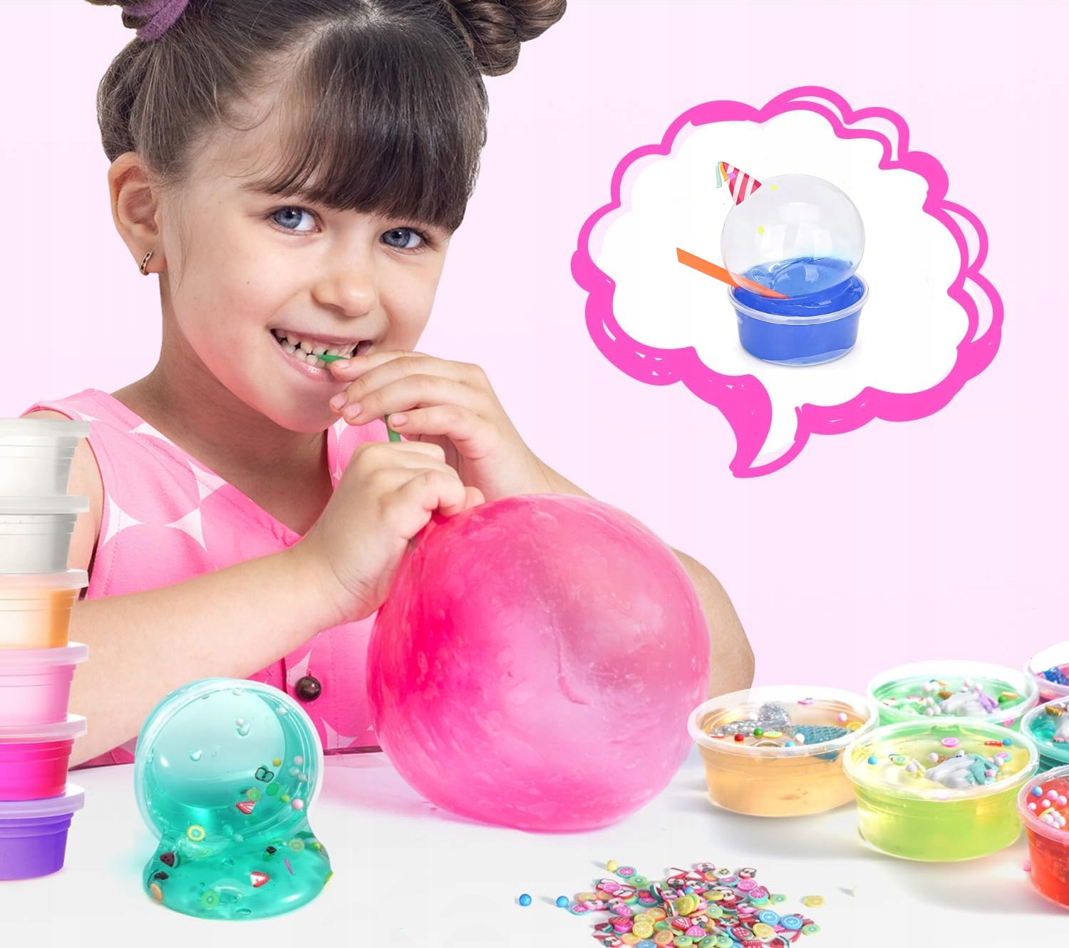 слиз -це багатозівок і сенсорних іграшок , окрім наповнення дитини, він допомагає йому де -штату, розвиває свої навички та стимулює відчуття дотику . творчий набір стимулює уяву і вчить ручне здібностей. Граючи, дитина розвиває свої мистецькі навички . Іграшка також зміцнює терпіння та концентрацію дітей. Це забезпечує велику забаву та величезну посмішку на обличчі дитини. 4 Дитина, що створює гліж, буде відчувати себе в лабораторії і буде в захваті від можливості створення різних форм маси.
