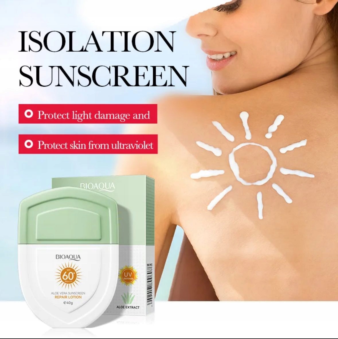 Сонцезахисний крем BIOAQUA SPF 60+ з алое — чудовий засіб для захисту шкіри від шкідливого сонячного випромінювання. Його фільтр із високим рівнем захисту SPF 60+ забезпечує ефективний захист від UVA та UVB випромінювання, допомагаючи запобігти сонячним опікам і передчасному старінню шкіри.
