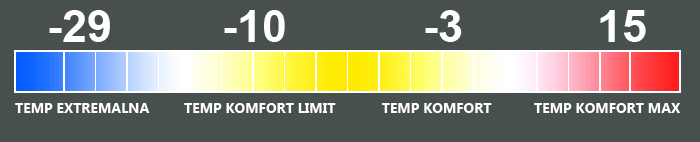 - Temp Komfort Max - це верхня межа комфорту, температура, при якій «стандартний чоловік» не потіє, а надмірна температура не заважає йому спати (звичайно, температуру Max можна регулювати, розстібаючи спальню сумка)