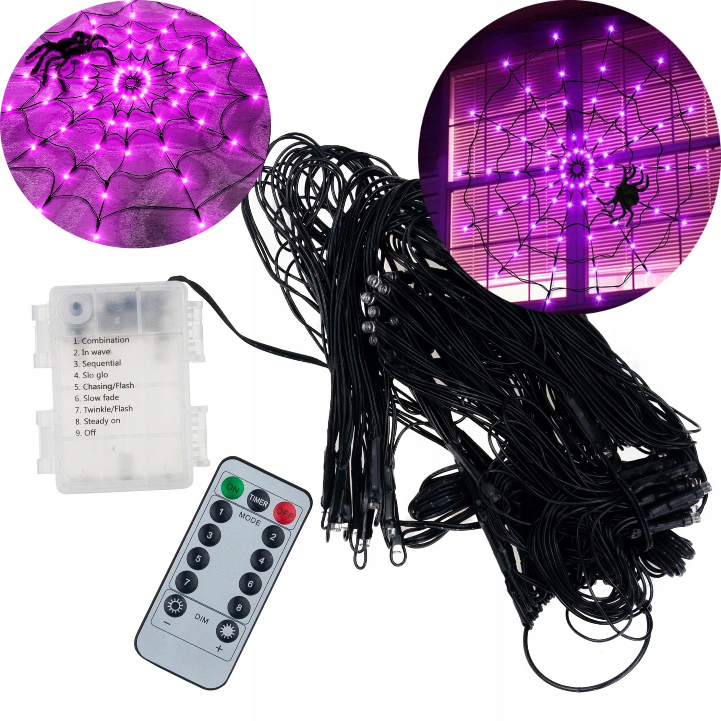 SPIDER WEB 70 LED ШТУЧНІ ХЕЛОВІНСЬКІ СВІТНІ ЛАМПИ ФІОЛЕТОВЕ ОСВІТЛЕННЯ