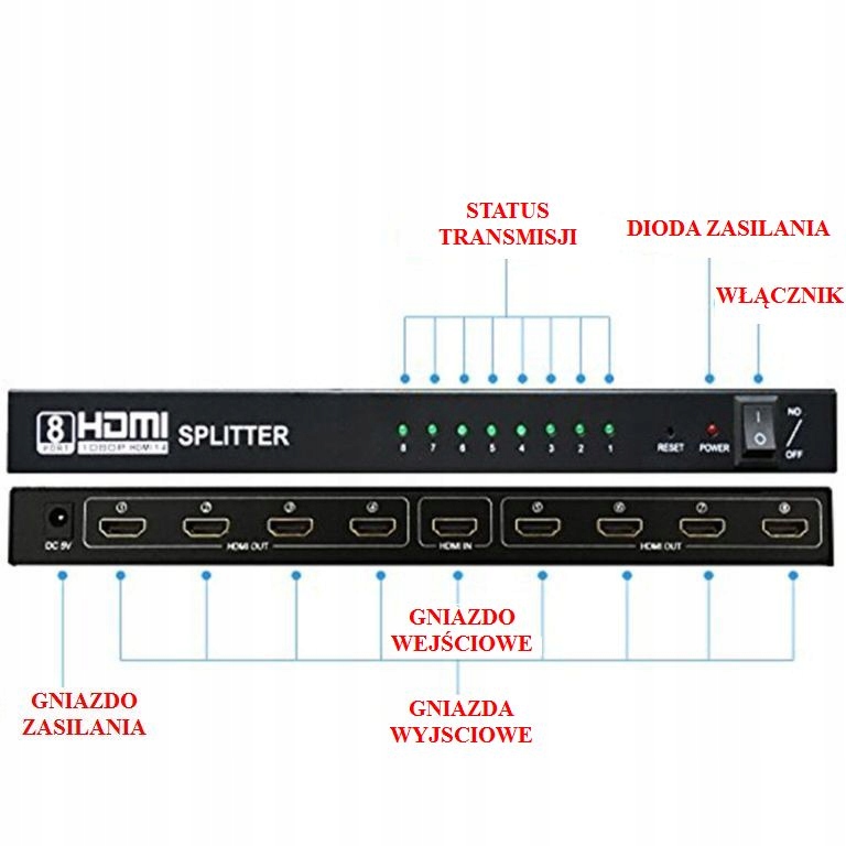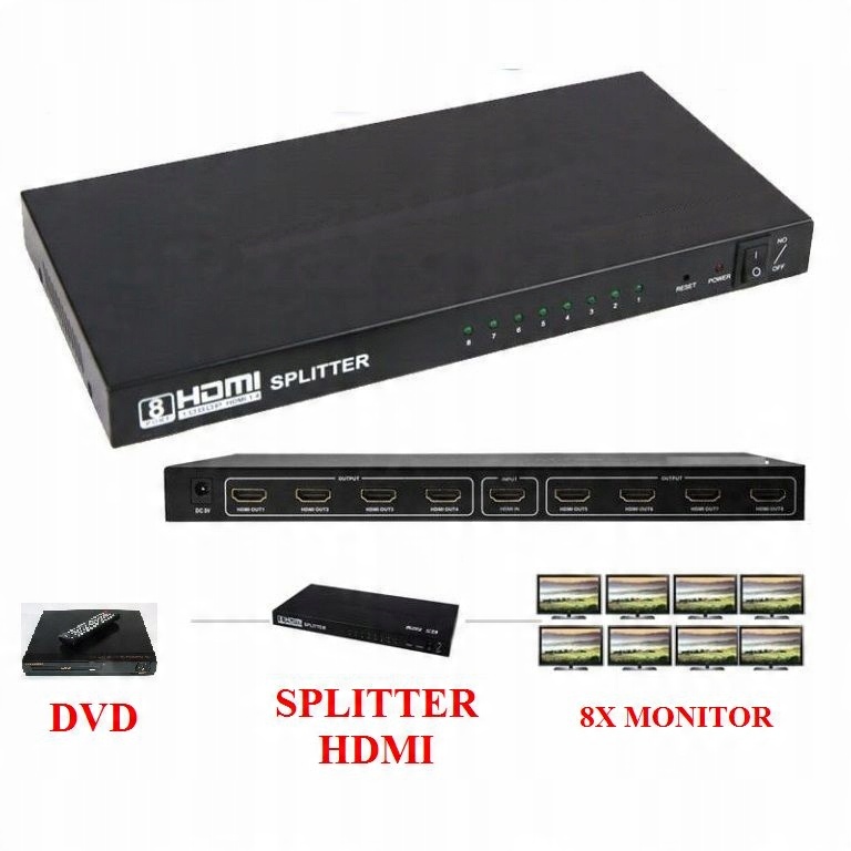 HDMI 1x8 Splitter — це високоякісний пристрій, який дозволяє підключати джерело аудіо/відеосигналу, наприклад декодер кабельного телебачення, Blu-ray або приймач, до одного виводити одночасно на вісім приймачів, наприклад, телевізор і проектор або монітор. Сигнал високої роздільної здатності передається одночасно на вісім приймачів. Пристрій підсилює сигнал HDMI, послаблений довгими кабелями HDMI (до 15 м на вході та 25 м на виході).