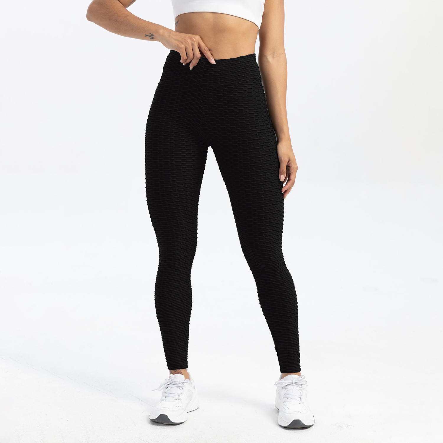 - Летгінси виготовлені з фактурної тканини, яка оптично збільшує сідниці, привертаючи увагу як у спортзалі, так і поза ним