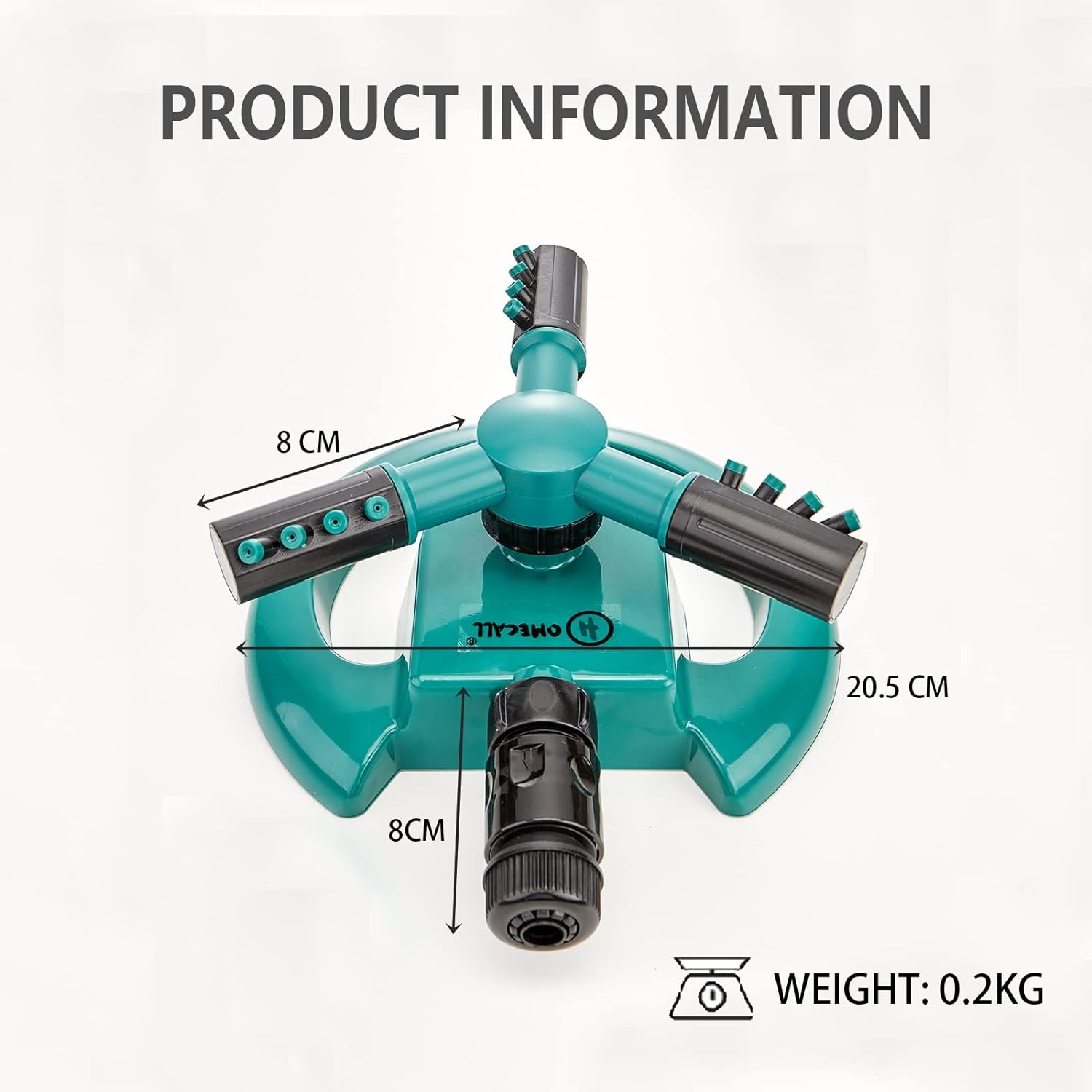 - 12 одиничних форсунок: газонний обприскувач має 3 вбудовані розпилювачі, кожна рука має 4 форсунки та загалом 12 форсунок. Садові спринклери — це потужніша форма зрошення, яка забезпечує кращий полив вашого двору.