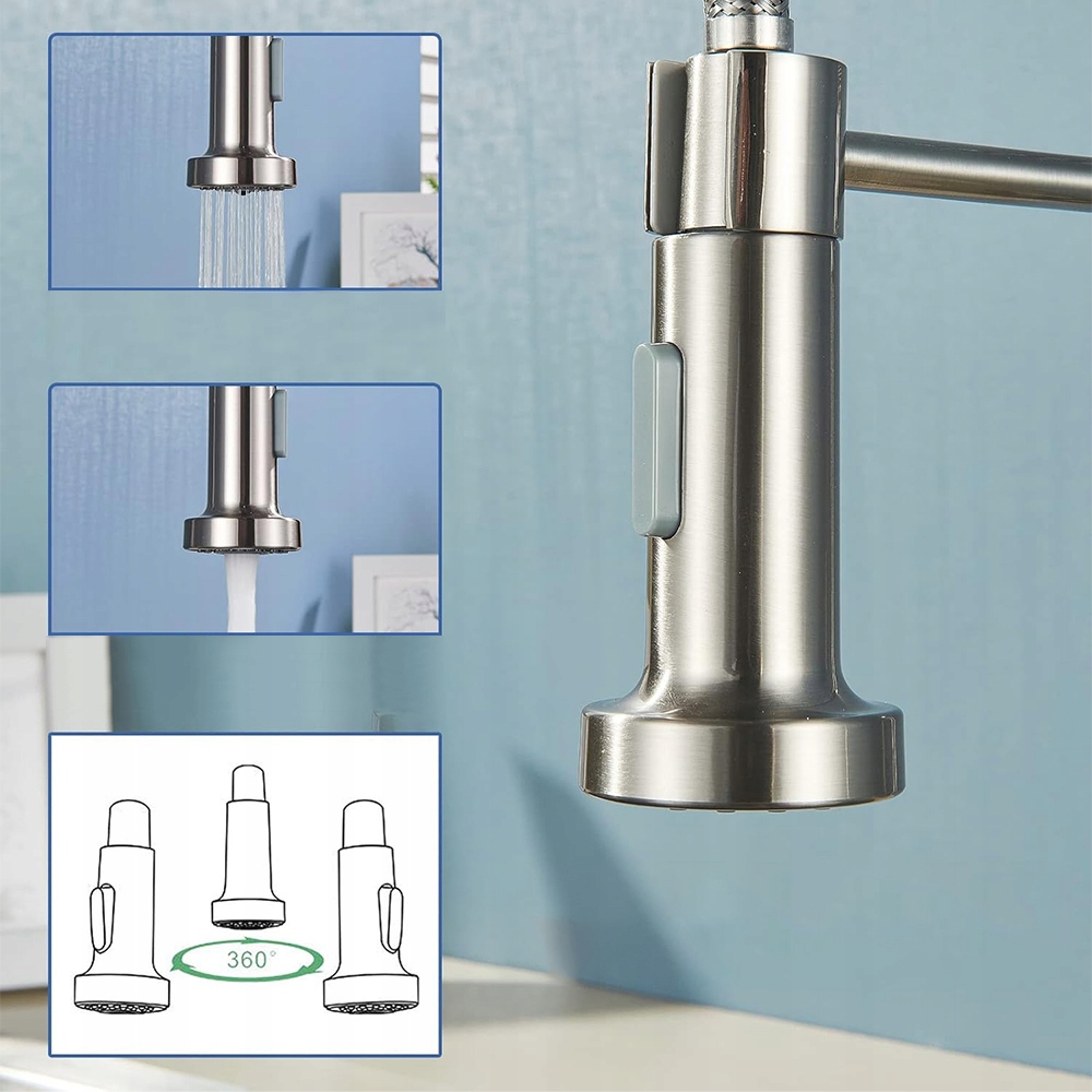 Срібна кухонна кран з носиками розтягнута гарячою та холодною сталь