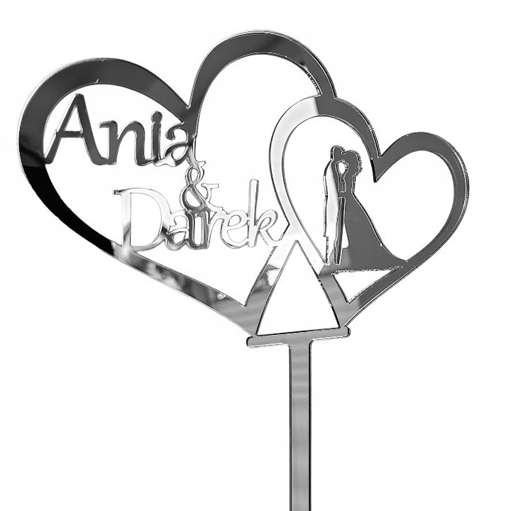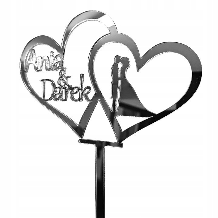 Срібний весільний топпер з іменами ІМЕНА на торт срібне дзеркало