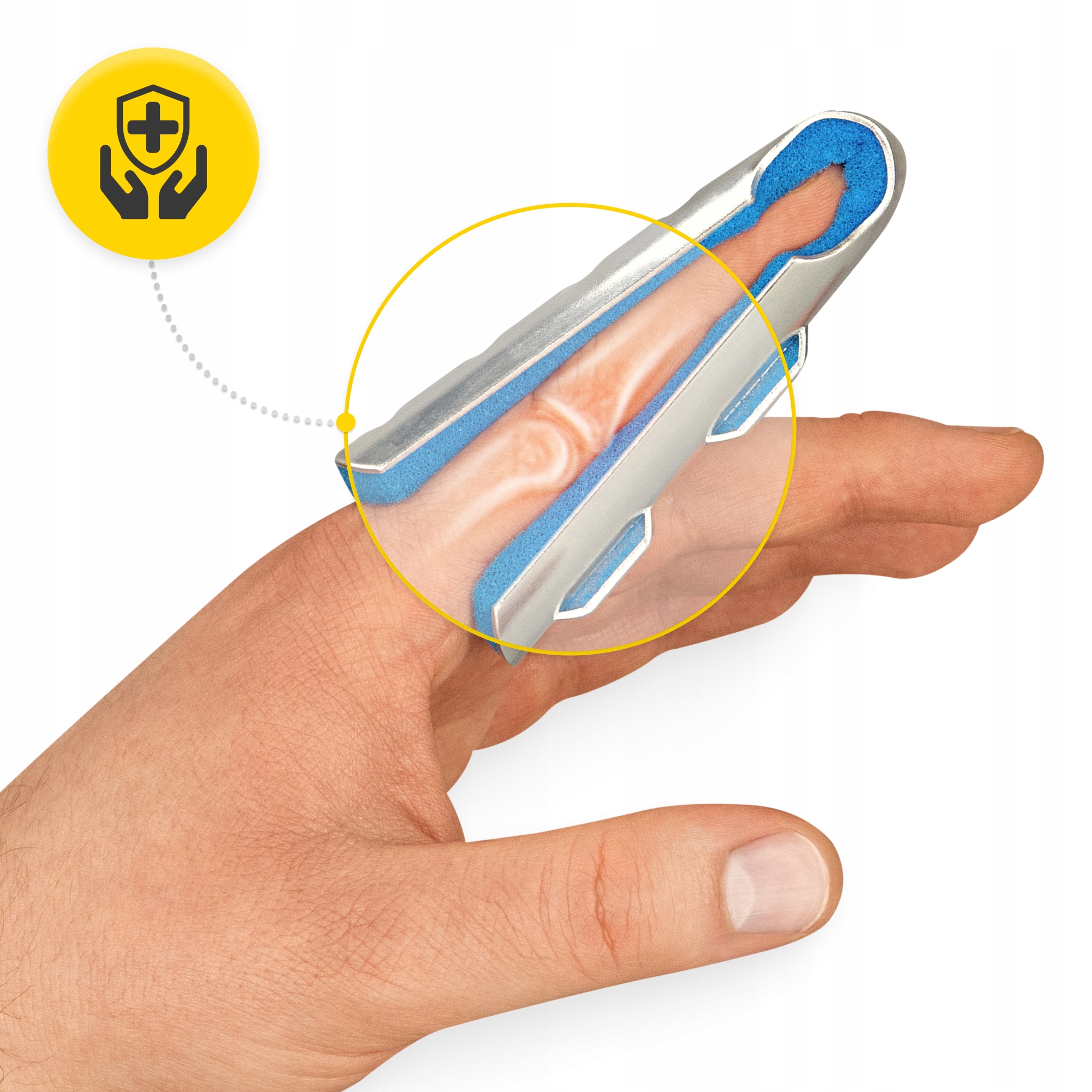 Стабільна конструкція шини дозволяє тримати палець у правильному положенні, знерухомлюючи його. Це означає, що ризик посилення травми значно менший, а процес відновлення проходить у безпечних умовах.
